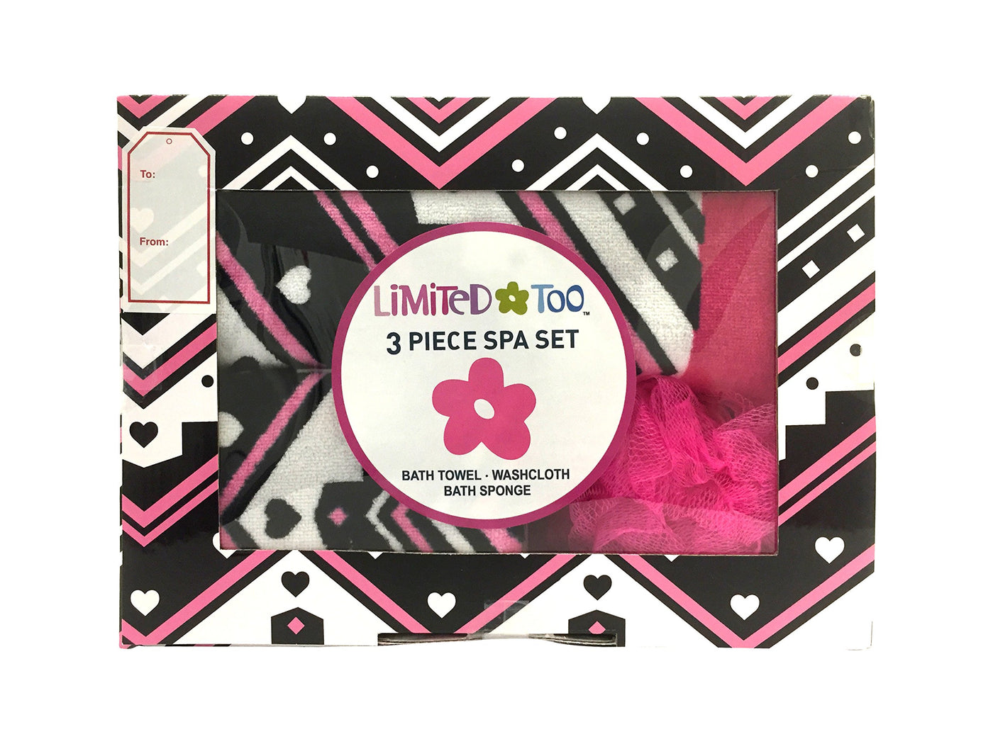 Any Young Lady Will Enjoy This Colorful Limited Too 'Aztec Bold' 3 Piece Spa/Towel Set. Give The Spa Set As A Gift Or To Brighten Up Any Kid'S Bathroom At Home. Each Set Includes A 22'' X 44'' Cotton Bath Towel, 12'' Square Cotton Washcloth And A Color Coordinated Bath Scrubber/Sponge To Complete The Set. 100% Cotton Is Super Absorbent And Maintains Color With Each Washing. Beautifully Gift Packaged With Open Front To See All Items Inside The Box. Imported.
