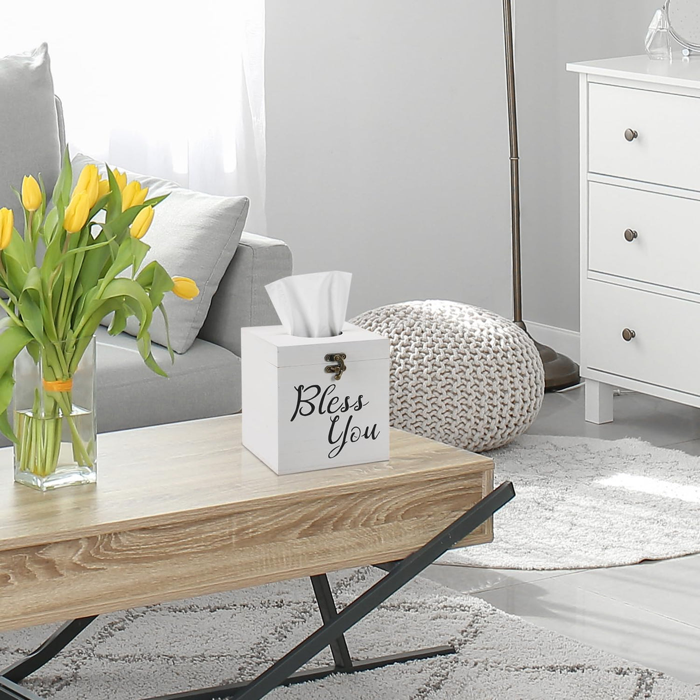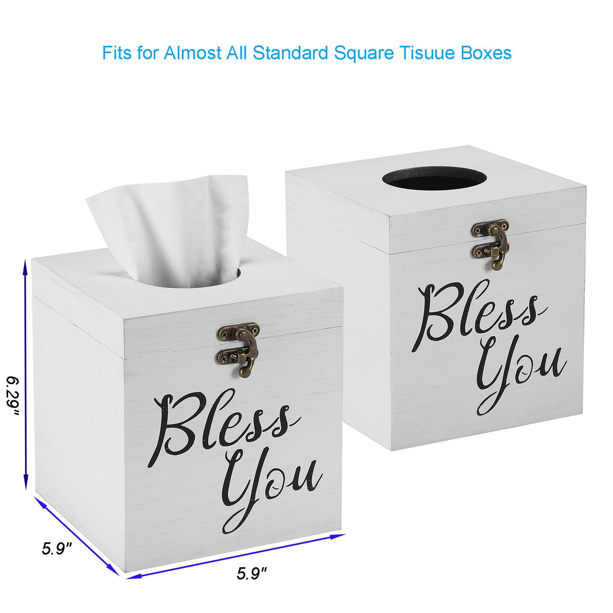 Jorikchuo Bless You Tissue Box Cover, Set Of 2 Wood Tissue Box Cover Square, Farmhouse Toilet Paper Holder (Classic White)