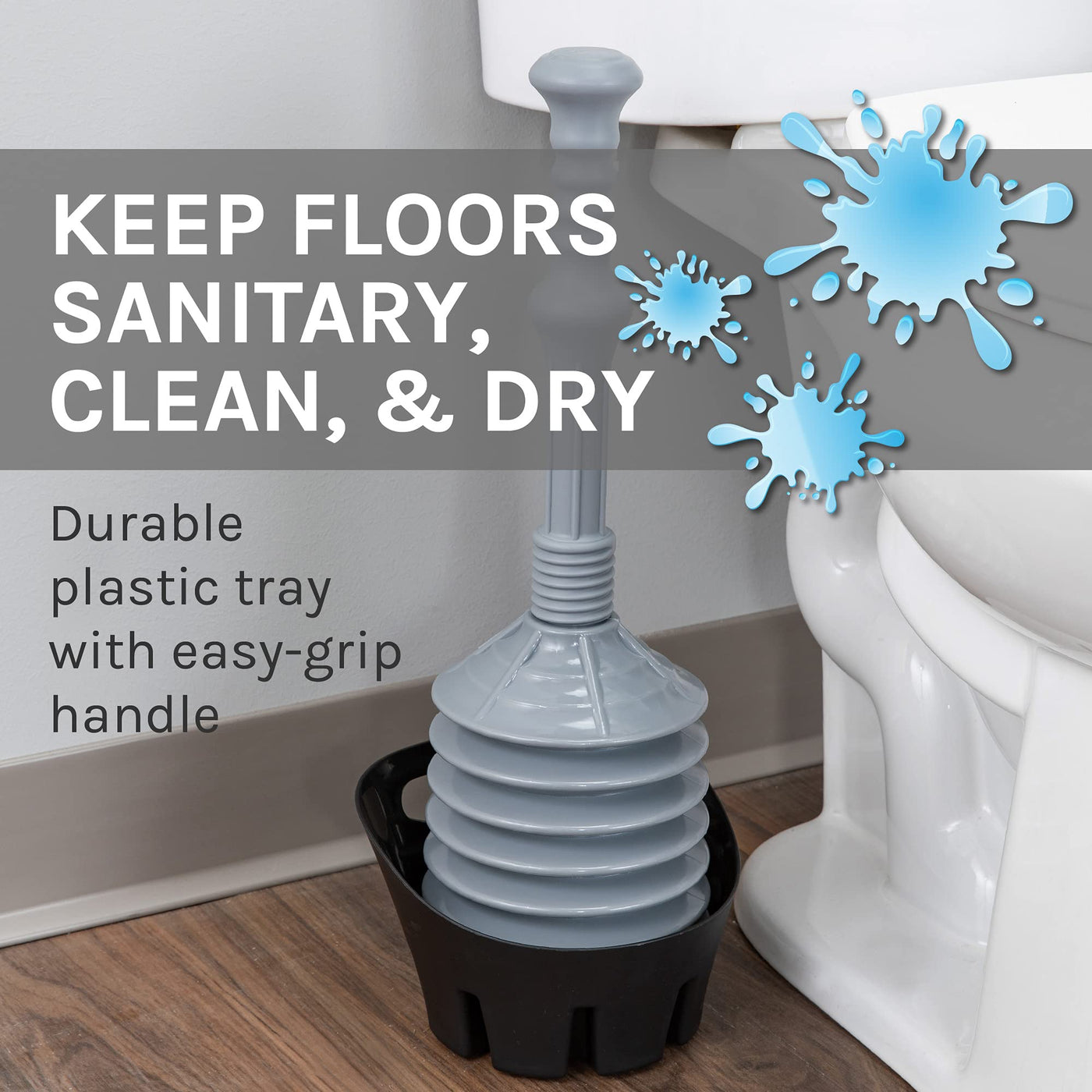 Our Bestselling Plunger Just Got An Upgrade! The Js Jackson Supplies Bellows Plunger You Know And Love Now Comes With Drip Tray Included. Our Grey Toilet Plunger With Black Storage Tray Is A Fashionable And Functional Addition To Any Bathroom. The Neutral Grey Color Is Made To Match Your Aesthetic Or Design Scheme. Its Never Been Easier To Break Up Stubborn Blockages In Your Toilet, Sink, Or Drain. The Accordion-Style Bellows Design Works With Any Standard Toilet To Help You Dislodge Clogs With Ease. Plungers Work By Pushing Water Towards The Clog. Standard Plungers Can Only Displace Between 2 And 4 Cups Of Water At A Time, But Our Accordion Design Allows For A Much Greater Capacity Than Other Toilet Bowl Plungers, Resulting In A More Forceful Push. Using A Back-And-Forth Motion While Plunging Will Provide A Highly Concentrated Stream Of Air And Water Directly Where Its Needed While Minimizing Splash Back. The Firm Plastic Of The Bellows Easily Bounces Back For A Quick, Effective Plunge. Traditional Plungers Are Made Of Porous Rubber, Which Allows Bacteria To Seep In And Is Difficult To Fully Clean. Our Bellows Plunger Contains No Fold In The Lip Design, Which Minimizes Residue While Allowing For Easy Cleaning. If Youd Prefer To Store The Plunger When Not In Use, The Handle Conveniently Unscrews From The Base To Provide Compact Storage. Ask Us Anything. The Js Jackson Supplies Team Is Standing By To Help You With Any Questions Or Concerns. We'Re Happy To Help With Product Inquiries Or Instructions, And If There'S A Problem With Your Order, We Want To Make It Right. Contact Us Through The Buyer-Seller Messaging Service.