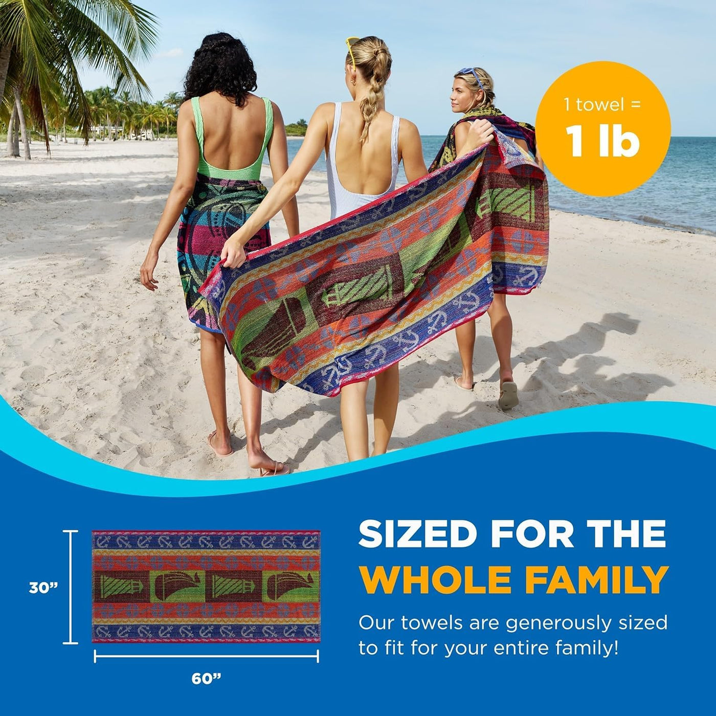 Kaufman - Soft Oversized Beach Towels In Bulk | 30'' X 60'' Printed Terry Cotton Bulk Beach Towels | 100% Cotton Thick Beach Tow