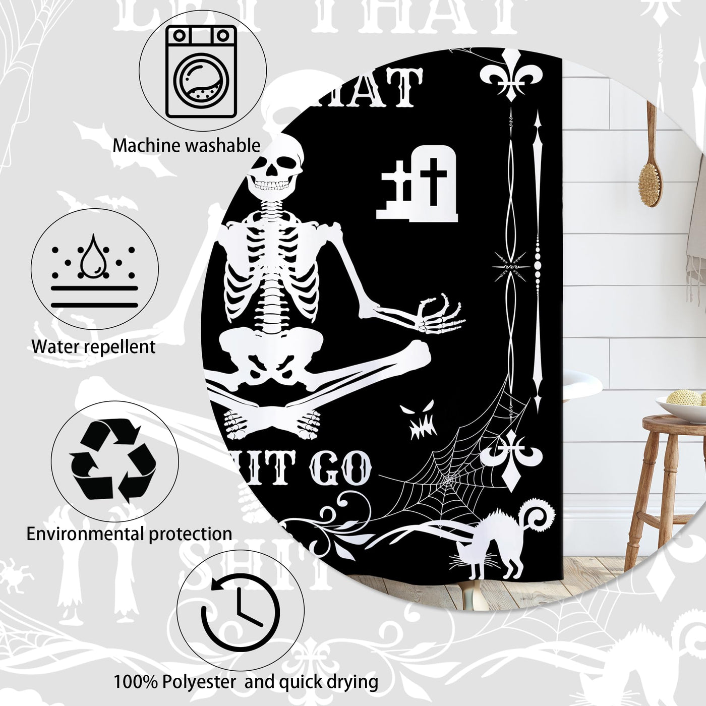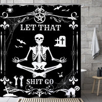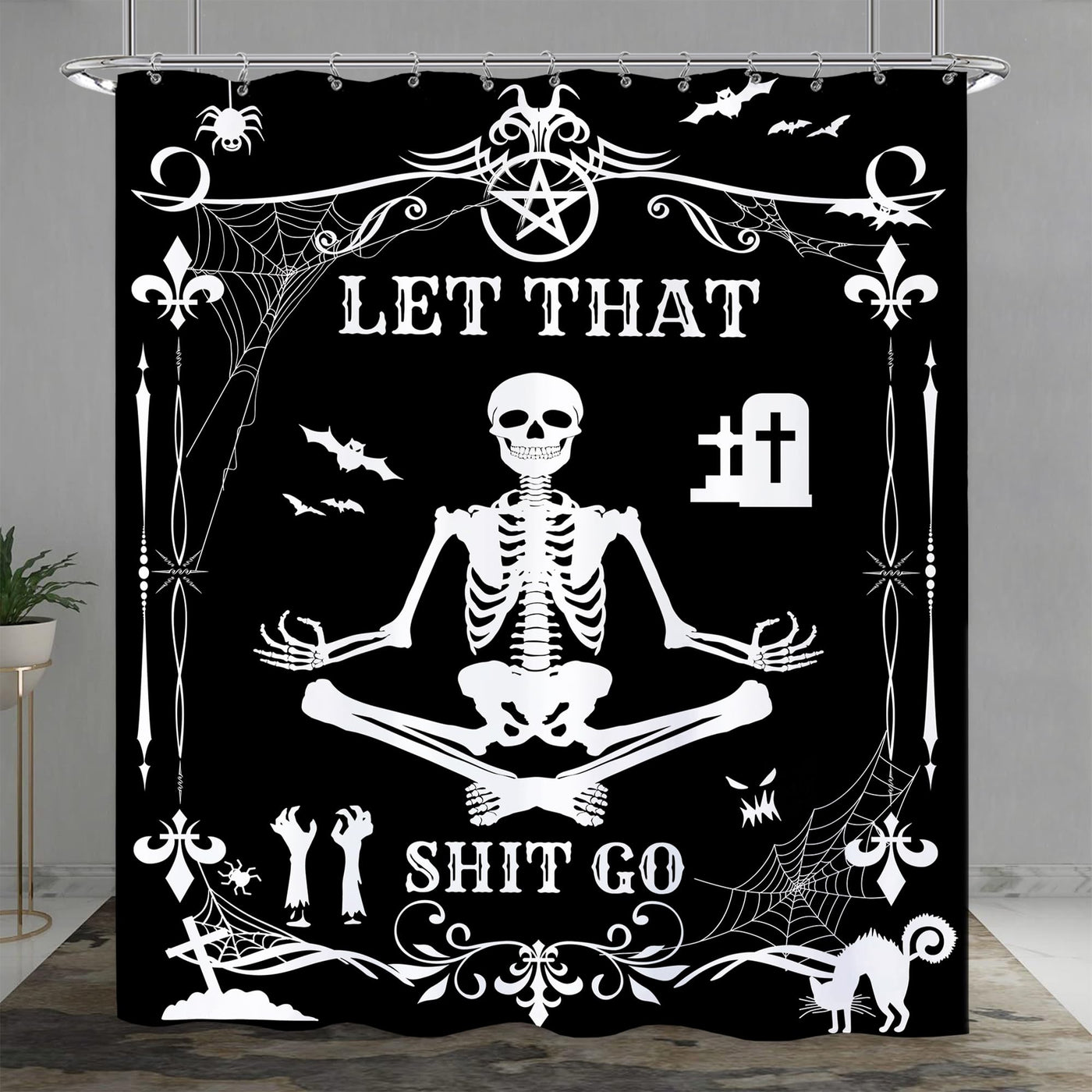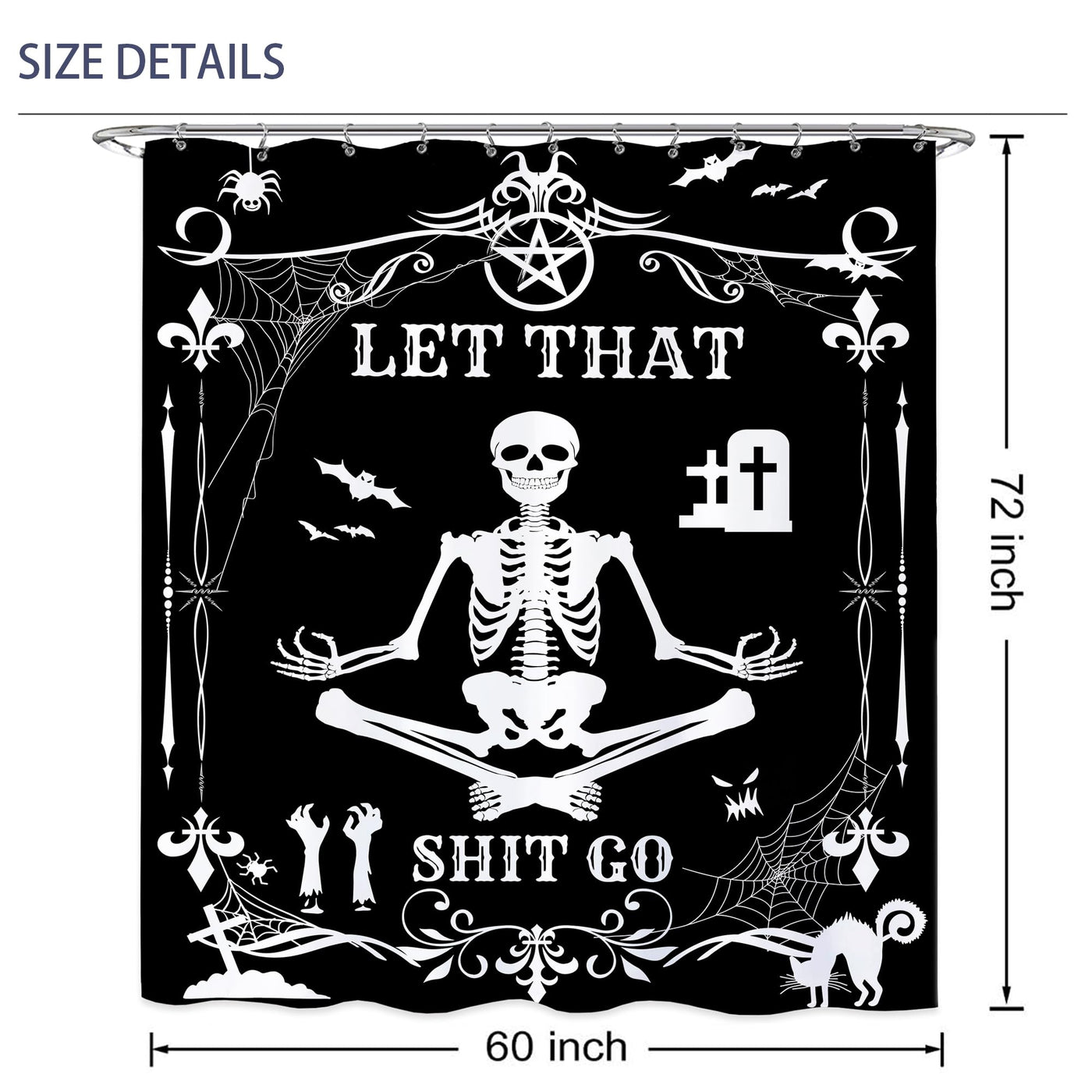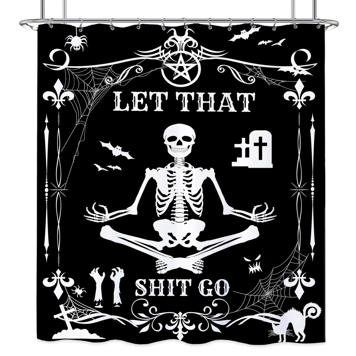 Laifzere Funny Black Skull Goth Shower Curtain Let That Shit Go Shower Curtain For Bathroom Set Skeleton Halloween Gothic Fun Fa