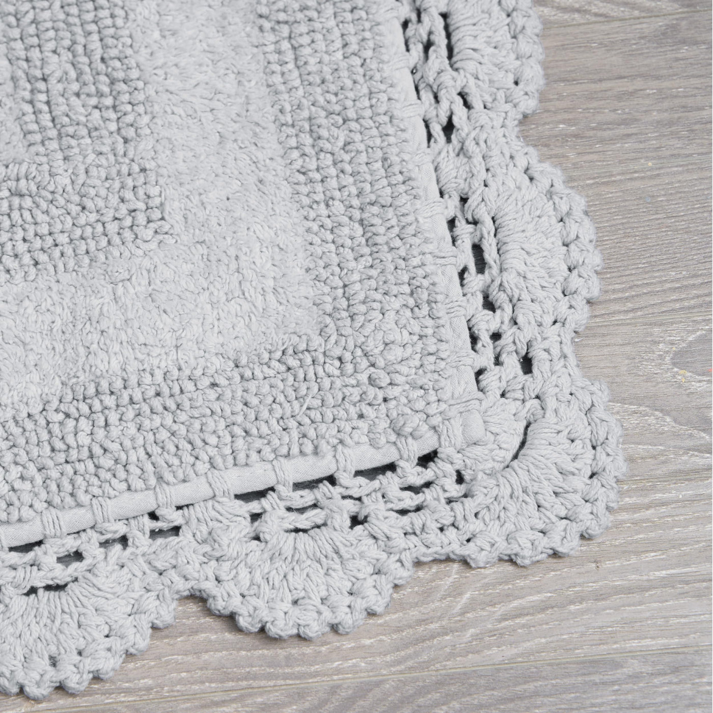 Laura Ashley Crochet Cotton 17X24/21X34 In. 2-Piece Bath Rug Set, Light Grey