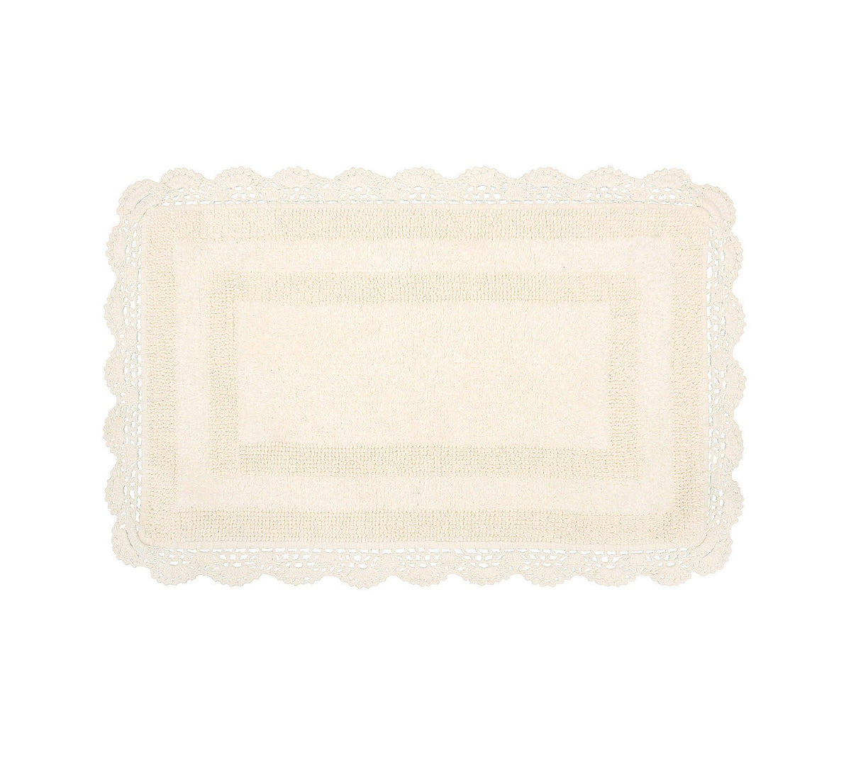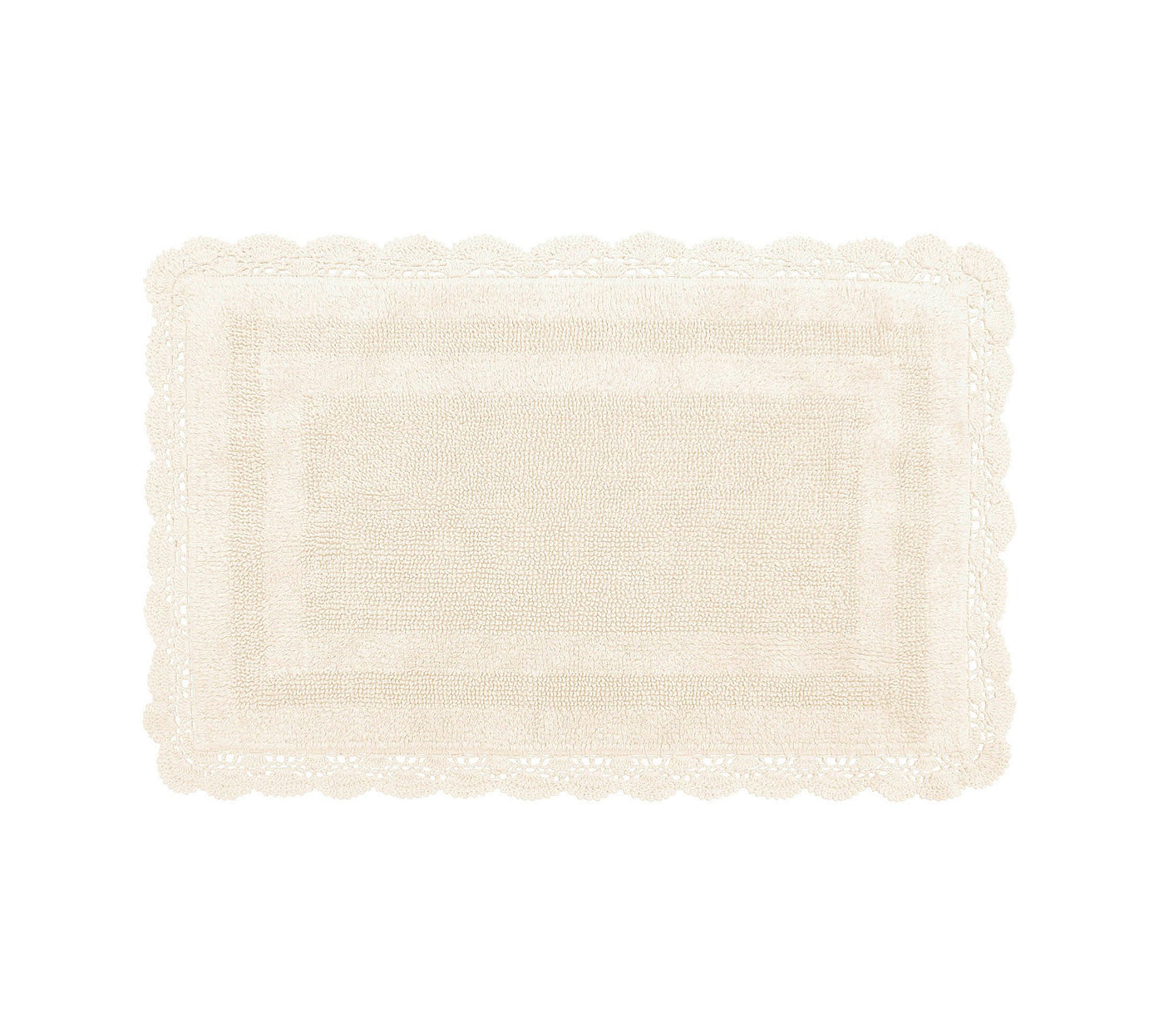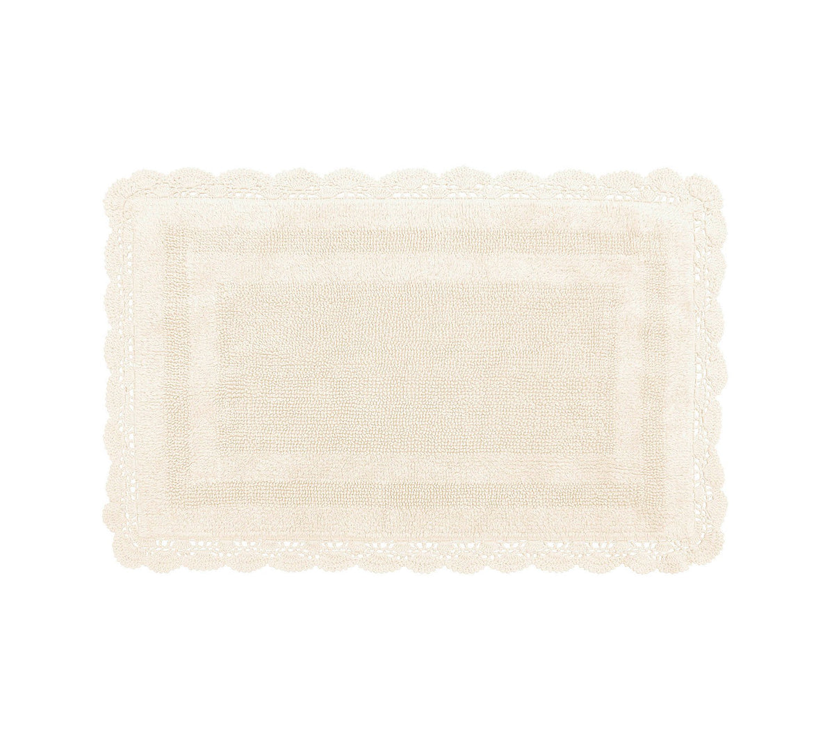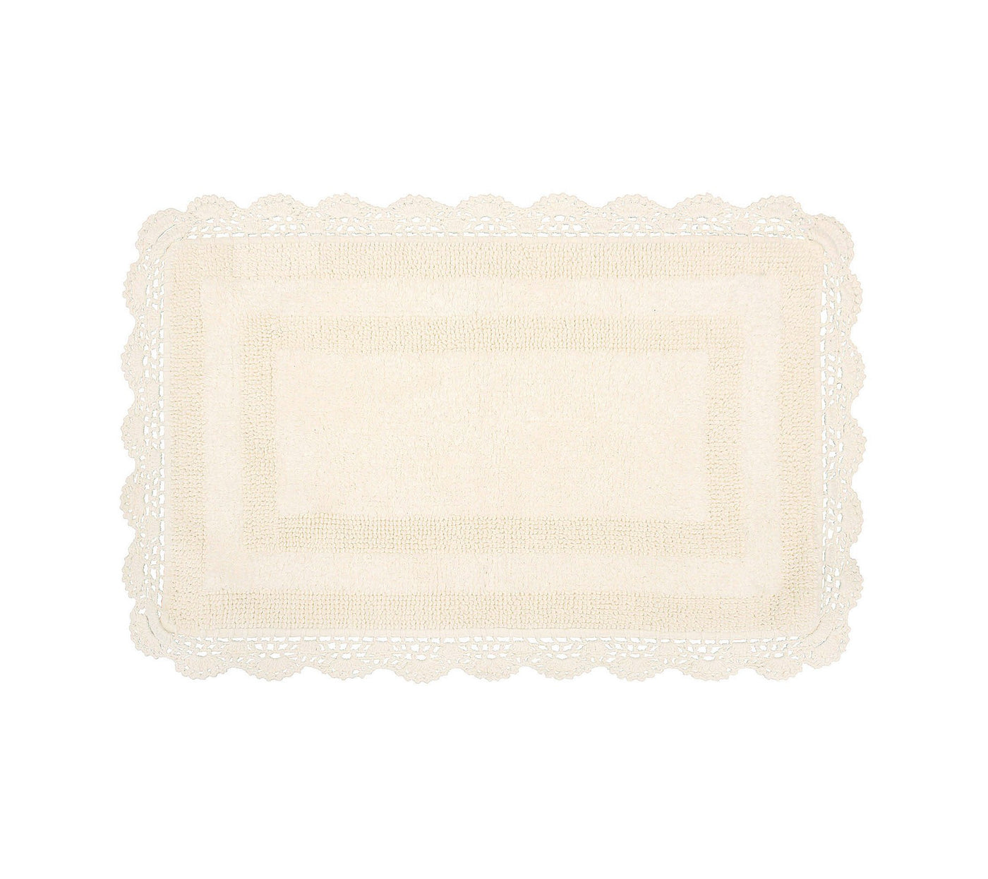 Q: Can I use the Laura Ashley Crochet Bath Rug in my bedroom or living area?A: Absolutely! The bath rug's classic design and size options make it suitable for use in bathrooms, bedrooms, or living areas.