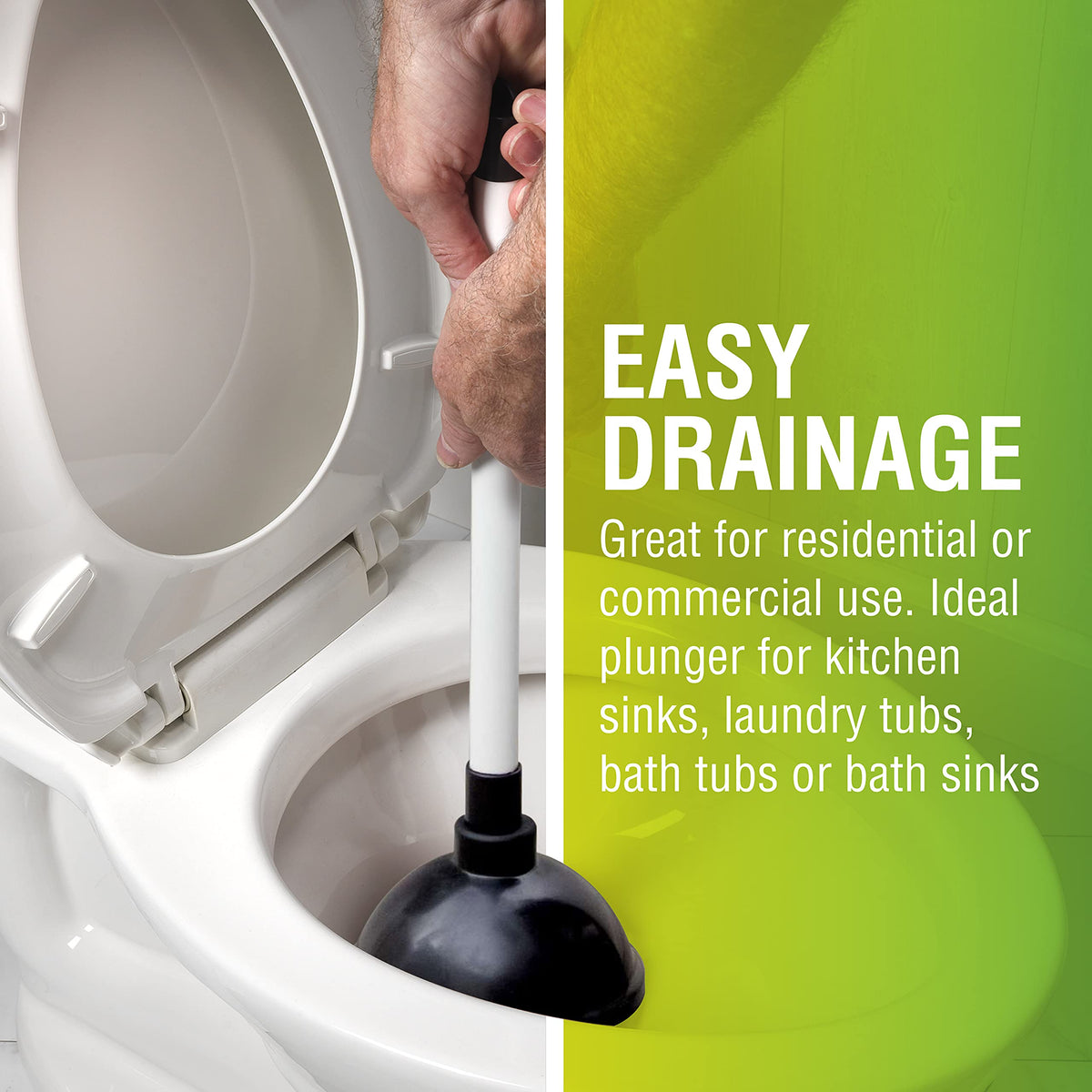 The Plunger From Ldr Is Ideal For Toilets Or Large Drains. The Lunging Action Of From The Cup Easily Pushes Water Down The Drain To Clear Stuck Objects. This Plunger Forms A Tight Seal Around The Drain So It Works Very Efficiently. With A Strong Handle And Cup, It Is Perfect For Home And Business Use.