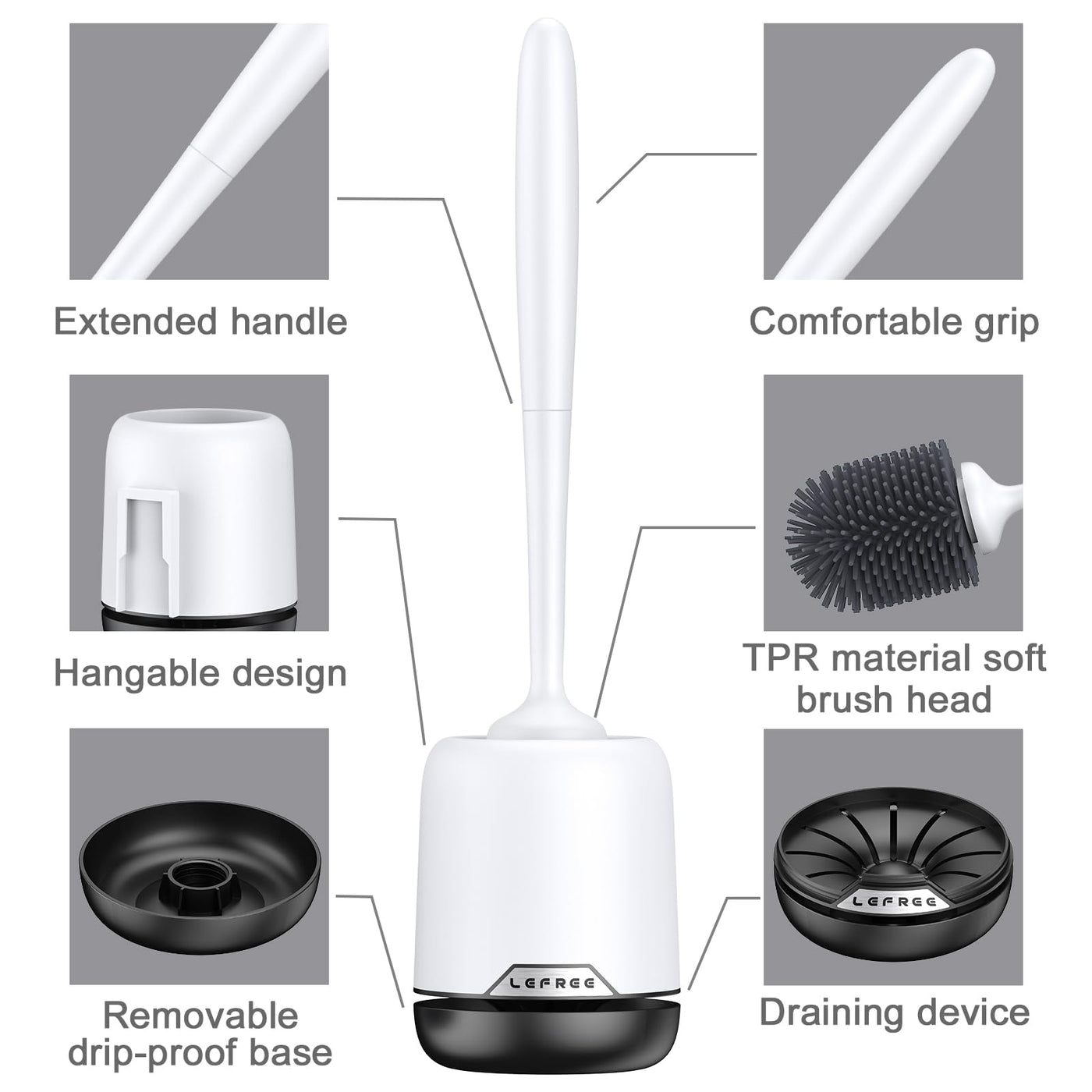 Q: Is the toilet brush safe for porcelain surfaces?A: Yes, the Lefree silicone toilet brush is gentle on porcelain surfaces. Its soft and resilient TPR bristles effectively clean without scratching or damaging the toilet bowl, making it a safe choice for your bathroom.