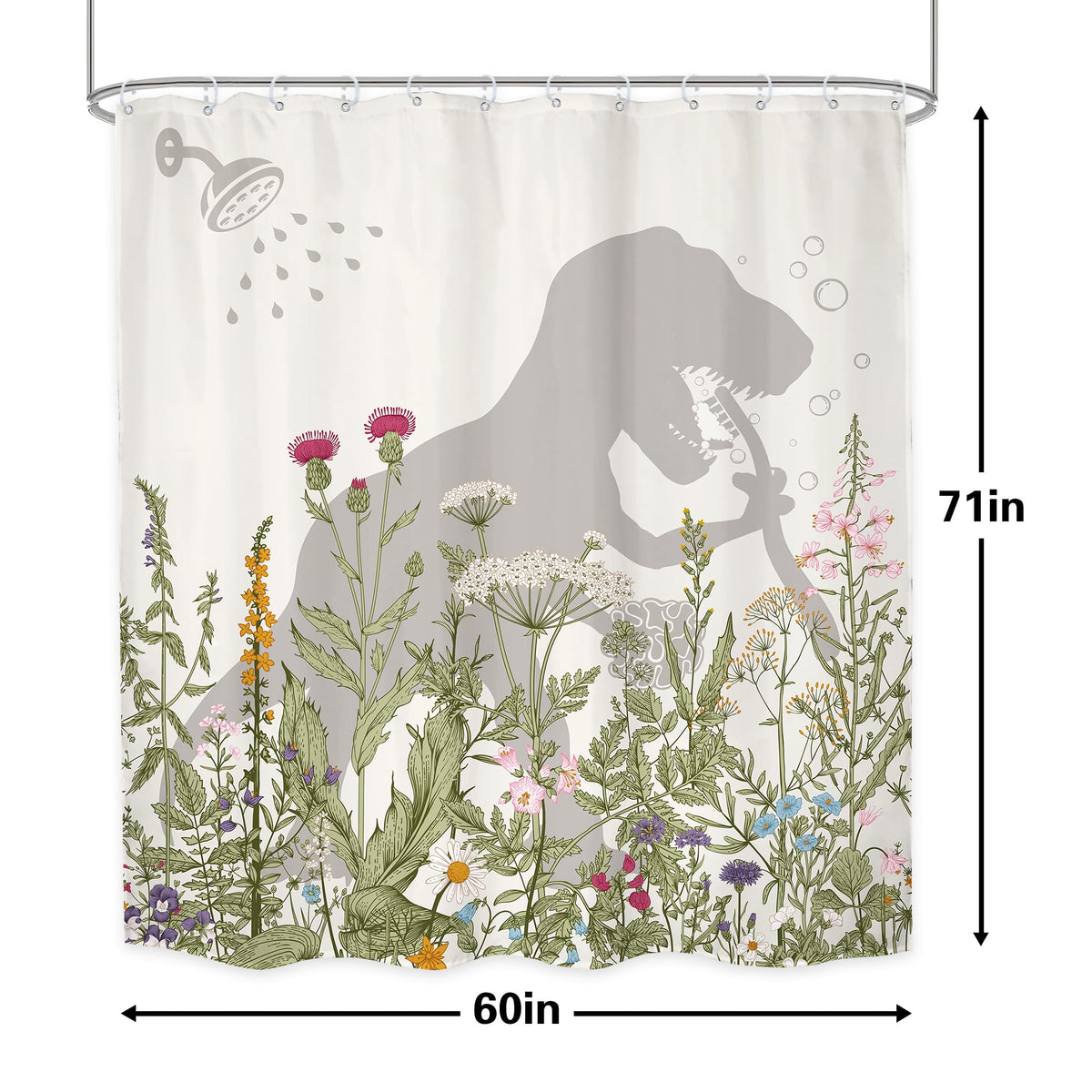 Q: Is the design of the LGhtyro Dinosaur Shower Curtain suitable for children's bathrooms?A: Absolutely! The unique dinosaur wildflower design combines vibrant colors and playful motifs, making it an excellent choice for kids' bathrooms and creating a fun atmosphere.
