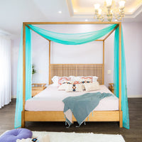 Linentalks Turquoise Canopy Bed Curtains For King & California King Bed, Tiffany Blue Canopy Bed Scarf, Sheer Scarf Valance Cano