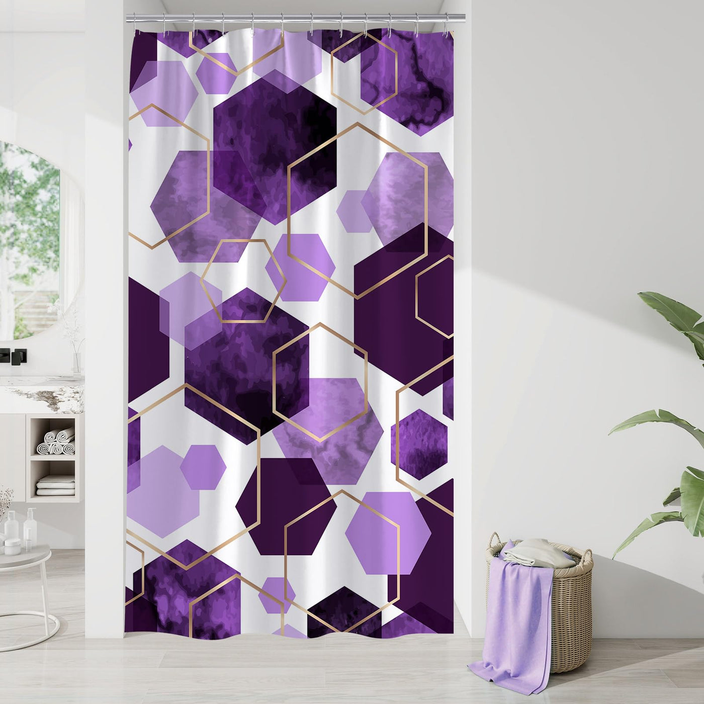 Litabel Modern Small Stall Shower Curtain For Bathroom, Purple Geometric Art Decor Waterproof Bath Curtain, Abstract Fabric Show