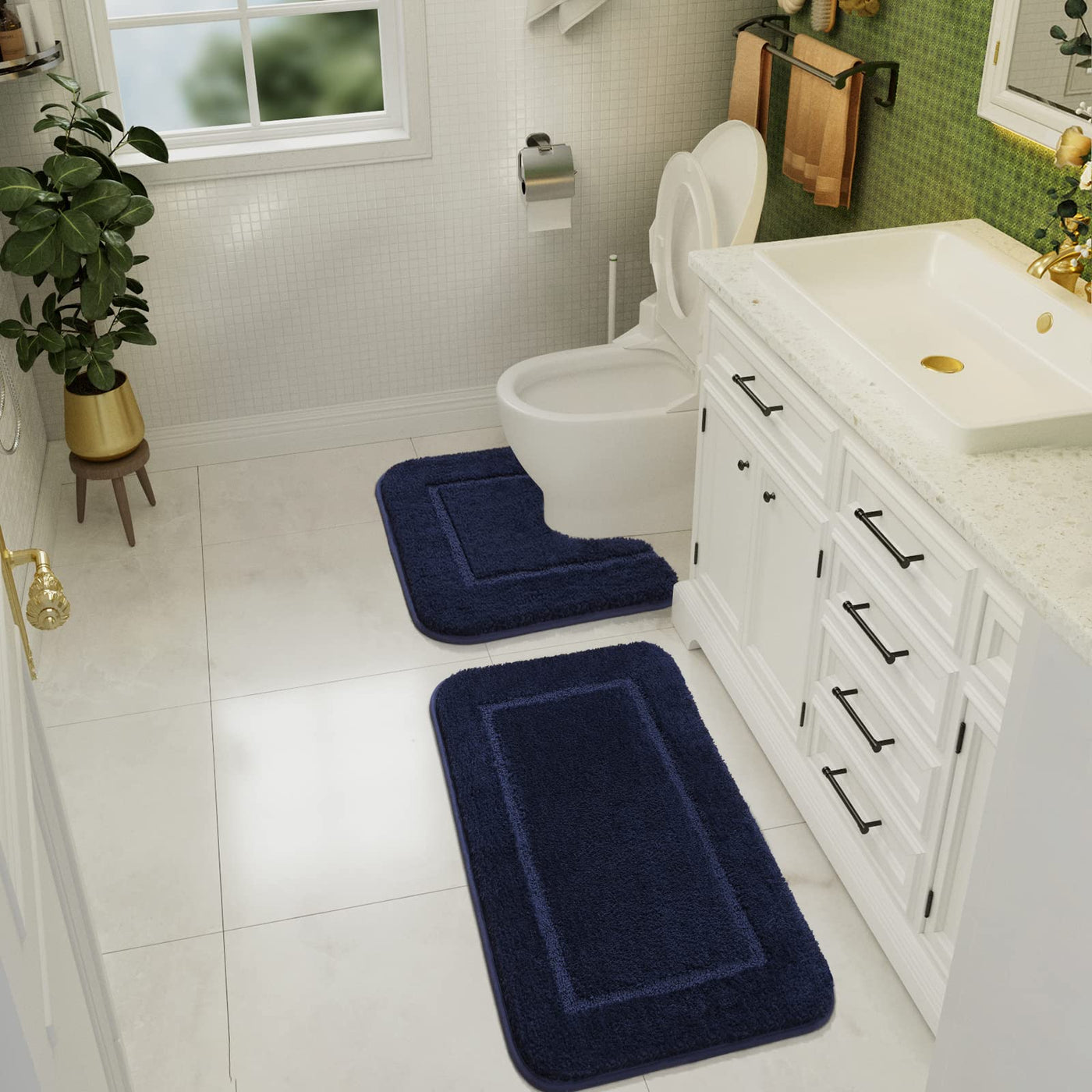 Lochas Bathroom Rug Set, 2 Piece Including 34X20 U-Shaped Toilet Mat, Soft Microfiber, Non Slip, Quick Dry, Absorbent, Machine W