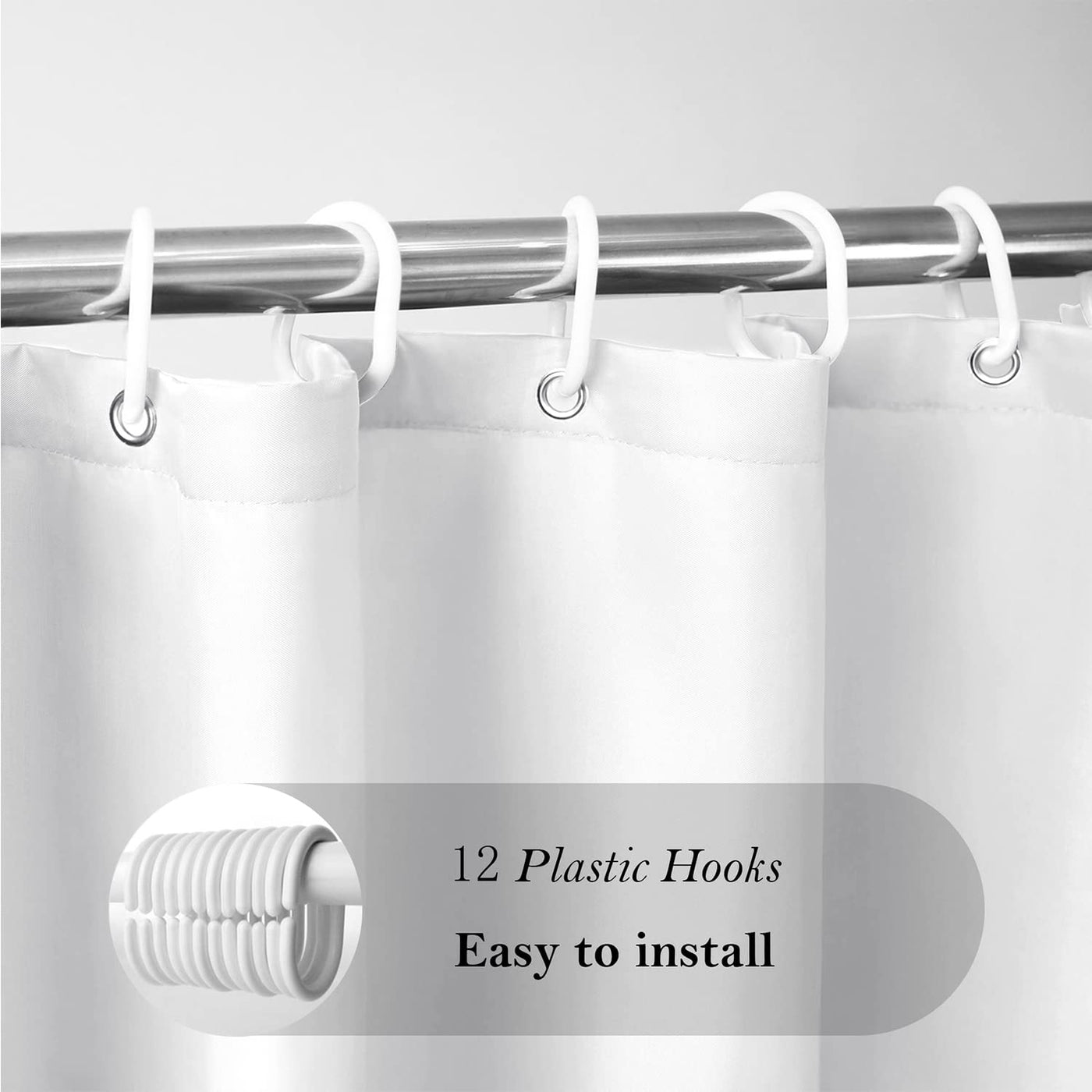 Long Shower Curtain Liner 78 Inches Height-Water-Repellent Fabric Shower Curtains Set With 12 Hooks, White Bathroom Curtain Weig