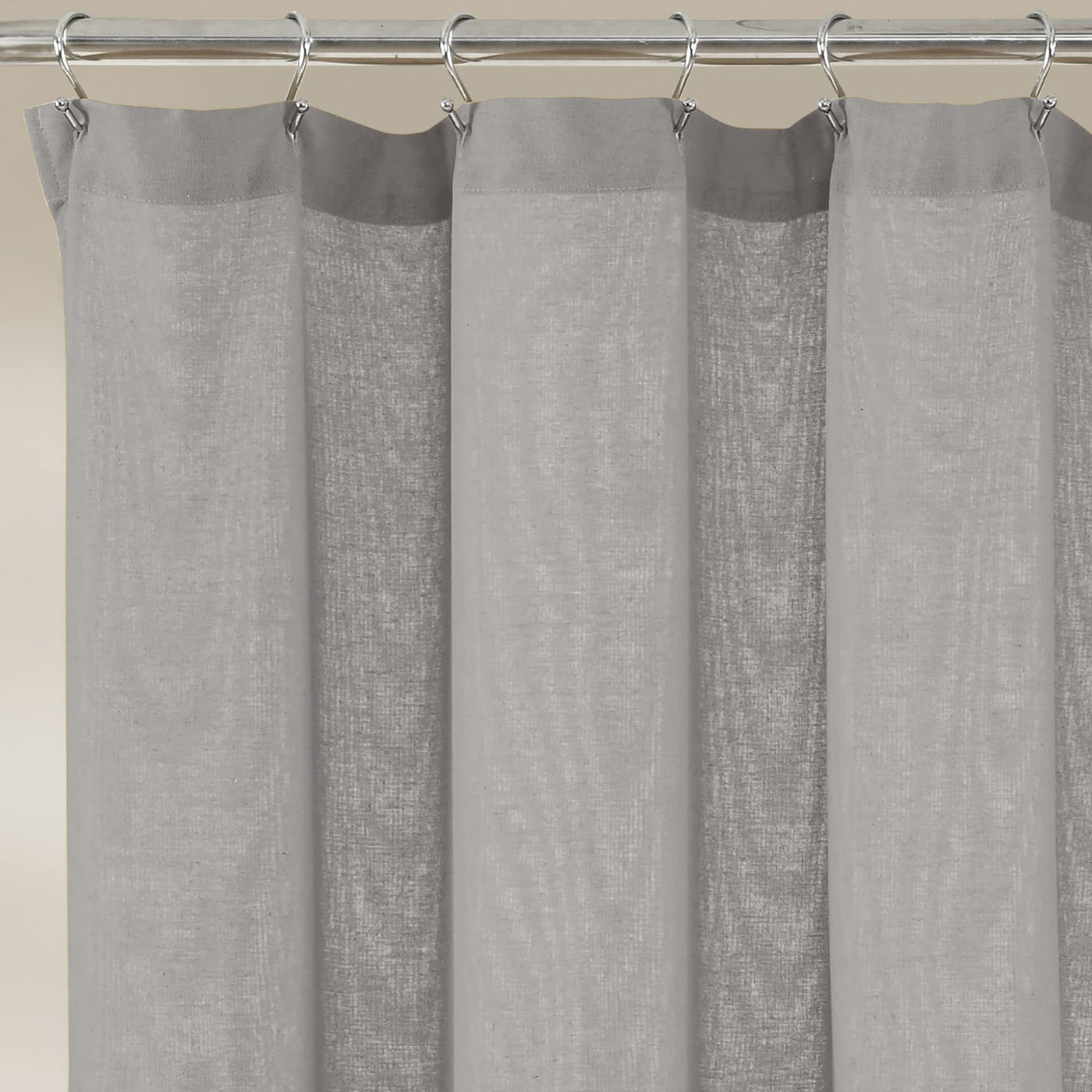 Q: What material is the Lush Decor Linen Button Shower Curtain made of?A: The Lush Decor Linen Button Shower Curtain is crafted from a linen-like cotton fabric blend consisting of 52% Polyester, 37% Cotton, and 8% Viscose, providing both durability and a charming aesthetic.