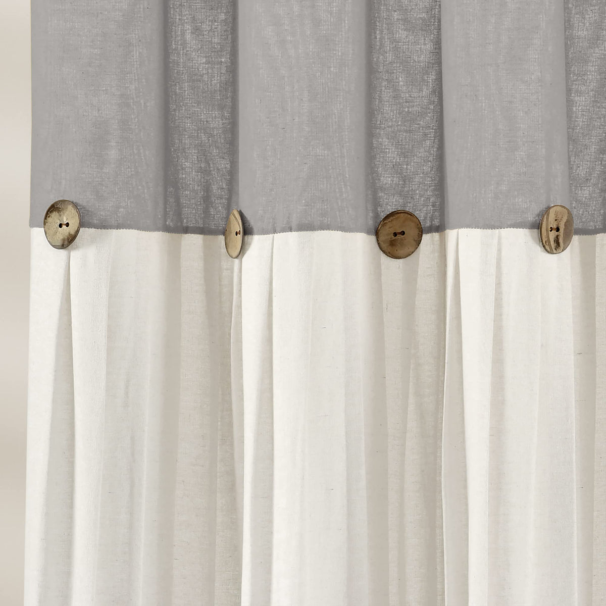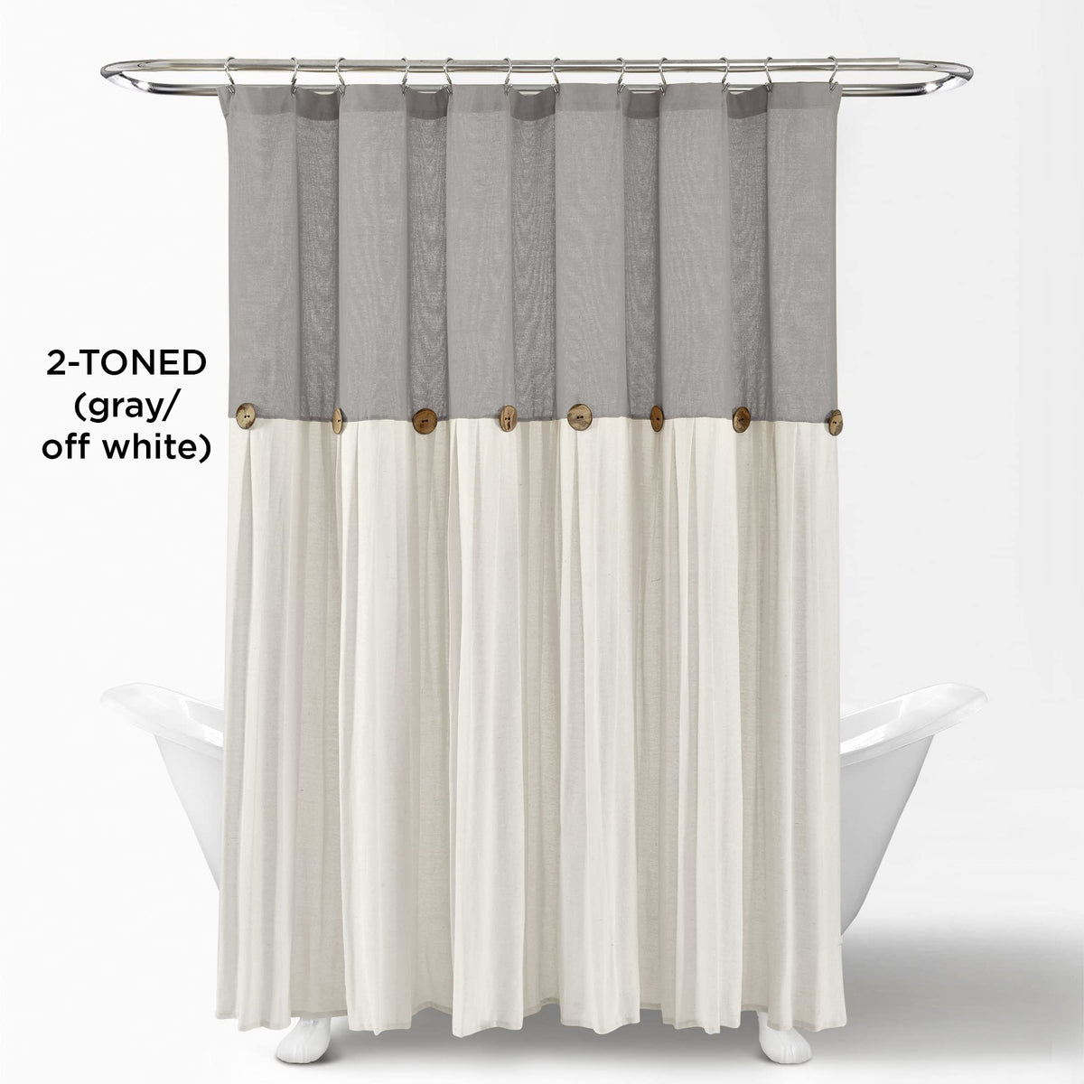 Add The Look Of Linen To Your To Your Home With Our Linen Button Shower Curtain. Featuring A Pleated Color Block Design And Coconut Husk Button Details, This Charming Bath Curtain Adds Style And Texture To Your Primary Or Guest Bathroom. This Shower Curtain Is Crafted From A Linen-Like Cotton Fabric Blend Of 52% Polyester, 37% Cotton, And 8% Viscose. The Coconut Husk Button Embellishments Add A Handcrafted Feel Your Space. The Pleats Give The Shower Curtain A More Textured Look. The Classic Color Block Style Is Easy To Match Any Space. The Linen-Like Fabric Offers The Rustic Charm And Texture Of Linen, Making This Shower Curtain The Perfect Addition To Your Modern Farmhouse, Country Chic Or Transitional Styled Bathroom. Sold As A Single Bath Curtain, This Farmhouse Shower Curtain Measures 72'' W X 72'' L. The 12 Button Holes At The Top Of This Shower Curtain Make It Easy To Hang With Hooks Or Rings, Ensuring A Simple Installation Process. Because This Is A Fabric Shower Curtain, We Recommend Pairing It With A Liner, Sold Separately. Caring For This Linen Button Shower Curtain Is Easy, Simply Machine Wash Cold On The Gentle Cycle, And Tumble Dry On Low. If Needed, Use An Iron On Low Heat To Remove Wrinkles Or A Non-Chlorine Bleach For Cleaning. Please Refer To The Product Label For Full Care Instructions.