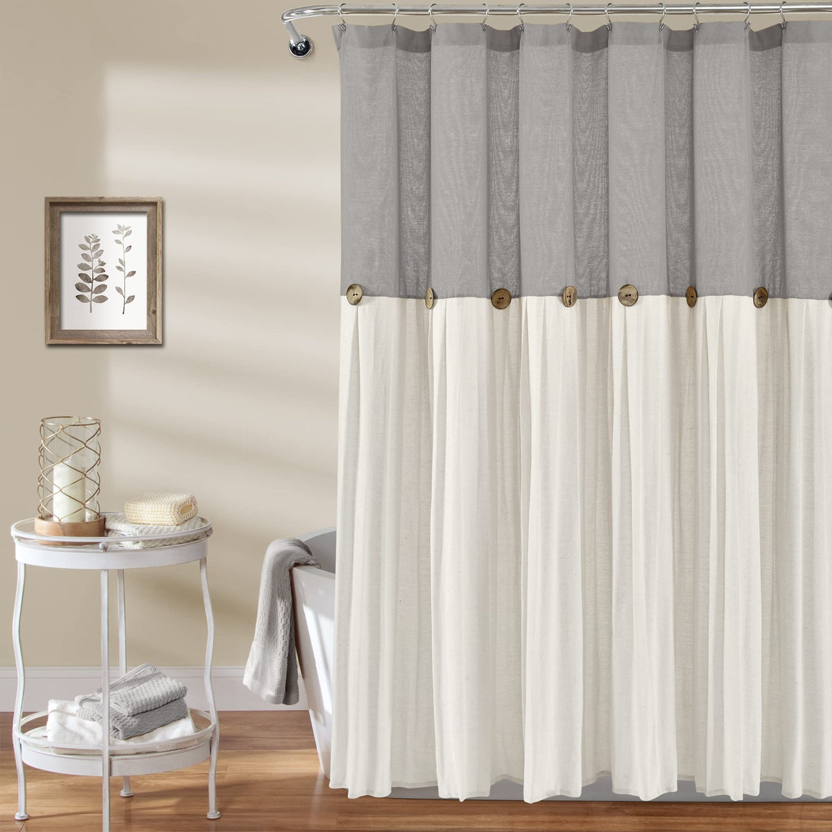 Lush Decor Linen Button Shower Curtain, 72'' X 72'', Gray & White