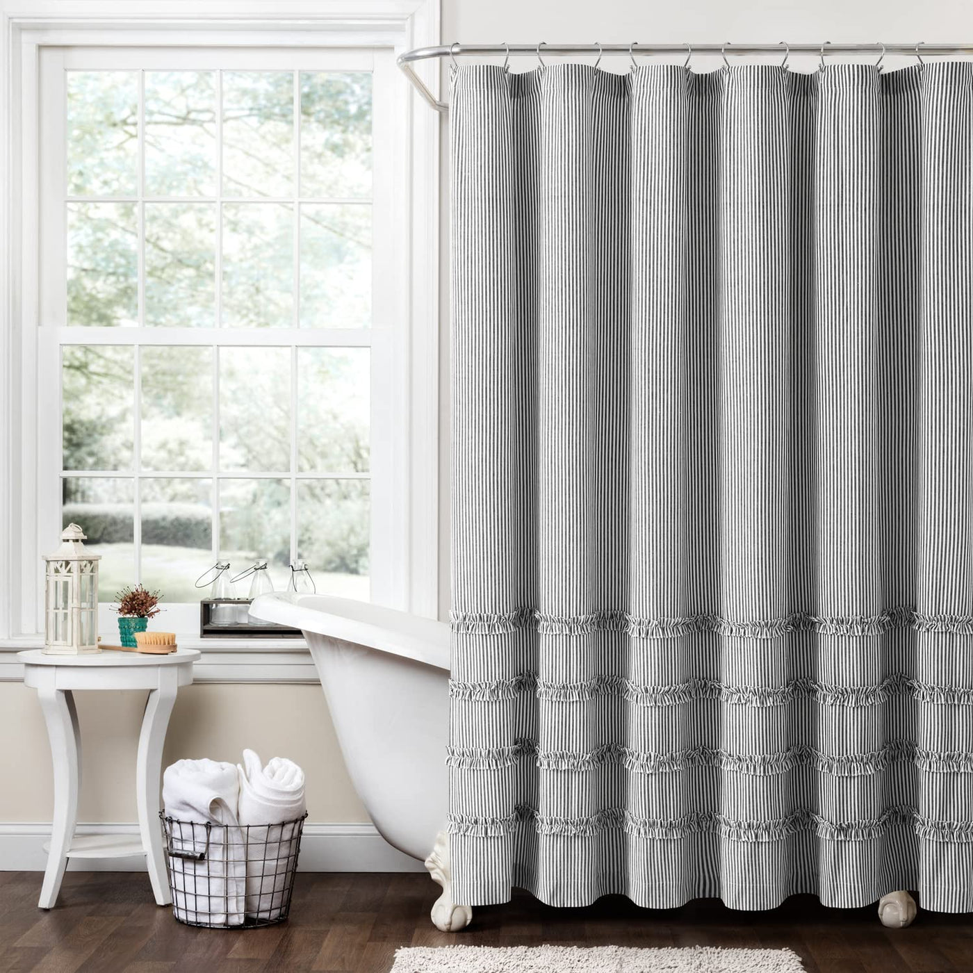 Lush Decor Vintage Stripe Yarn Dyed Cotton Shower Curtain, 72' X 72', Black