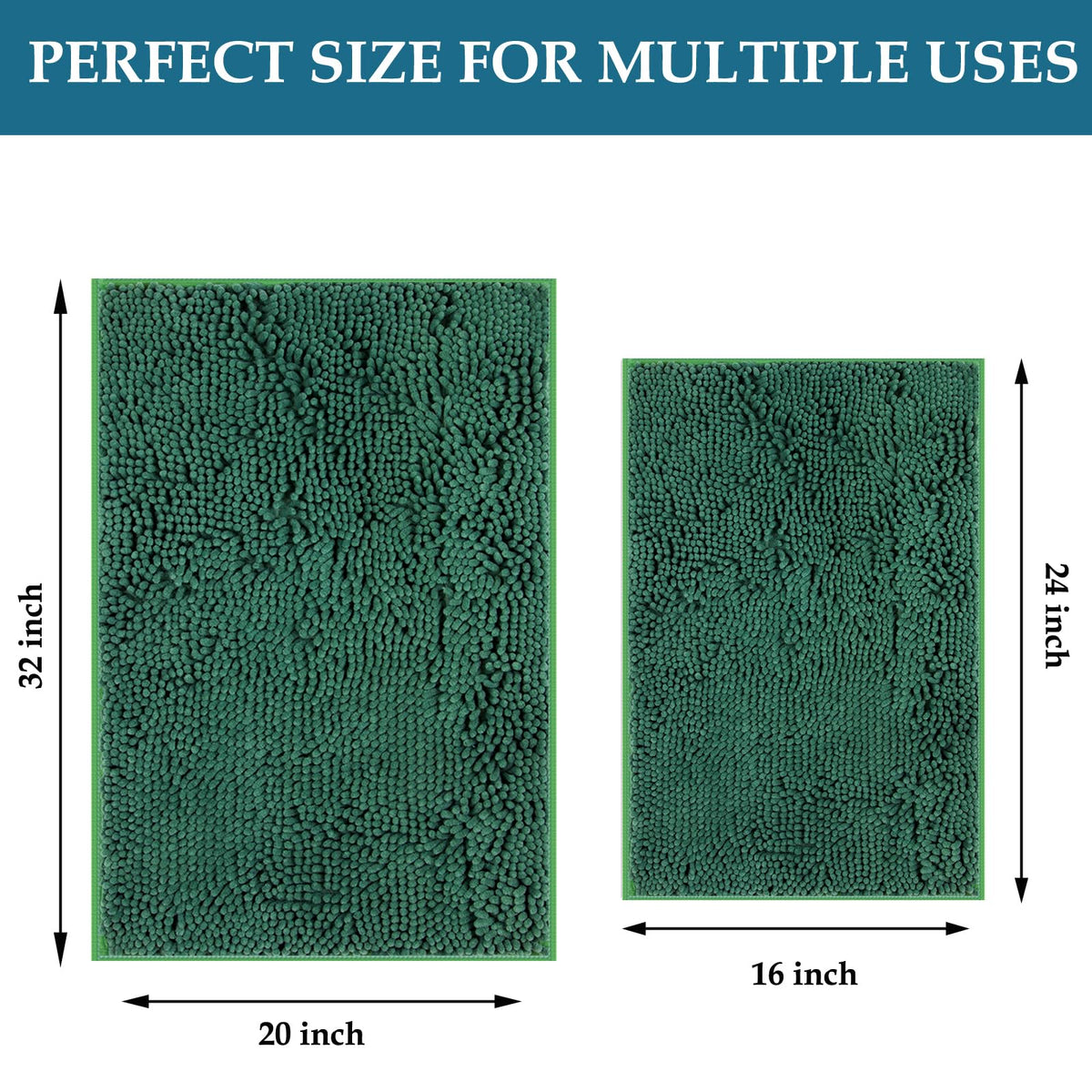 Luxury Bathroom Rug Mat 24X16+20X32, Extra Soft And Absorbent Chenille Bath Rugs, Plush Shaggy Bathroom Carpet, Non-Slip Bathtub
