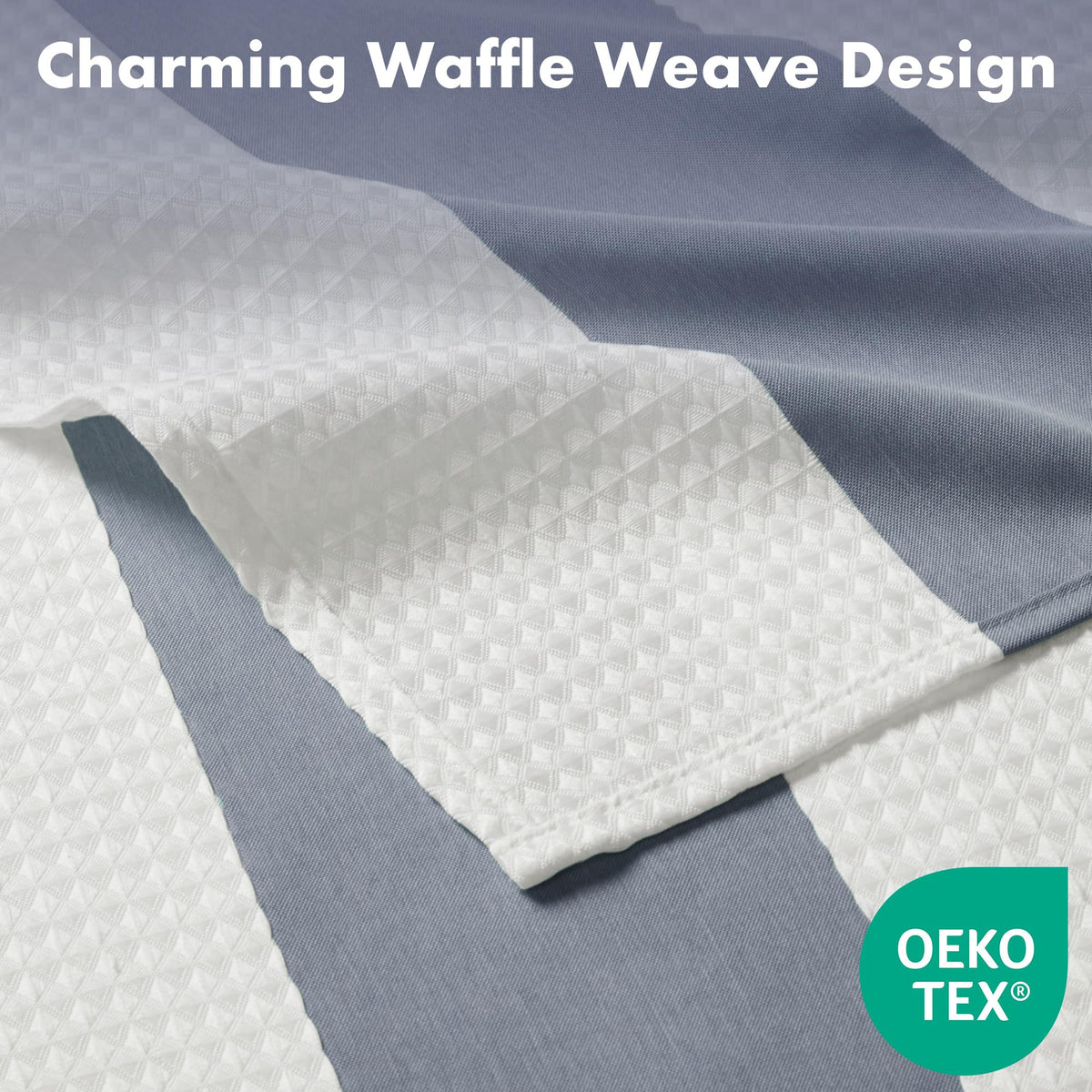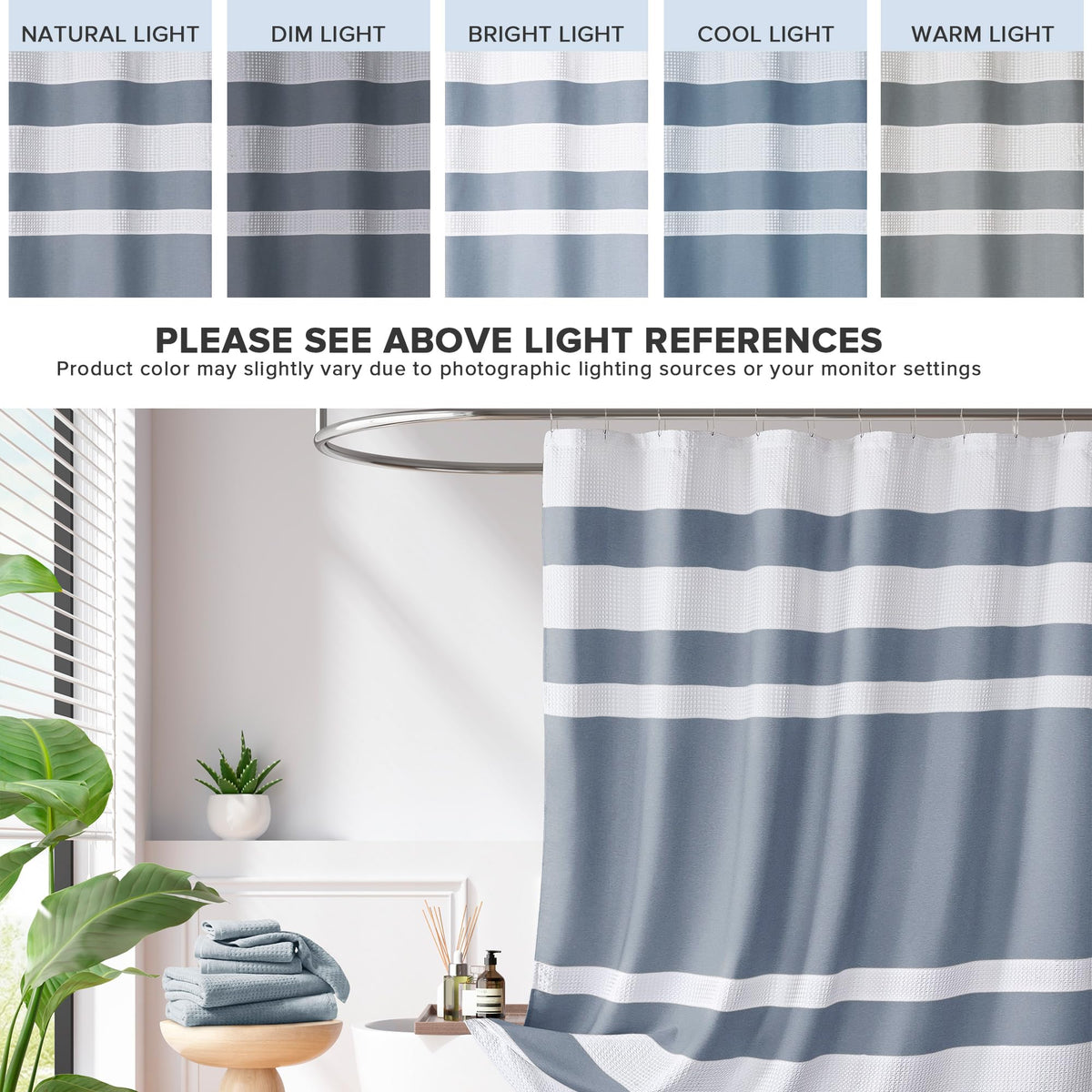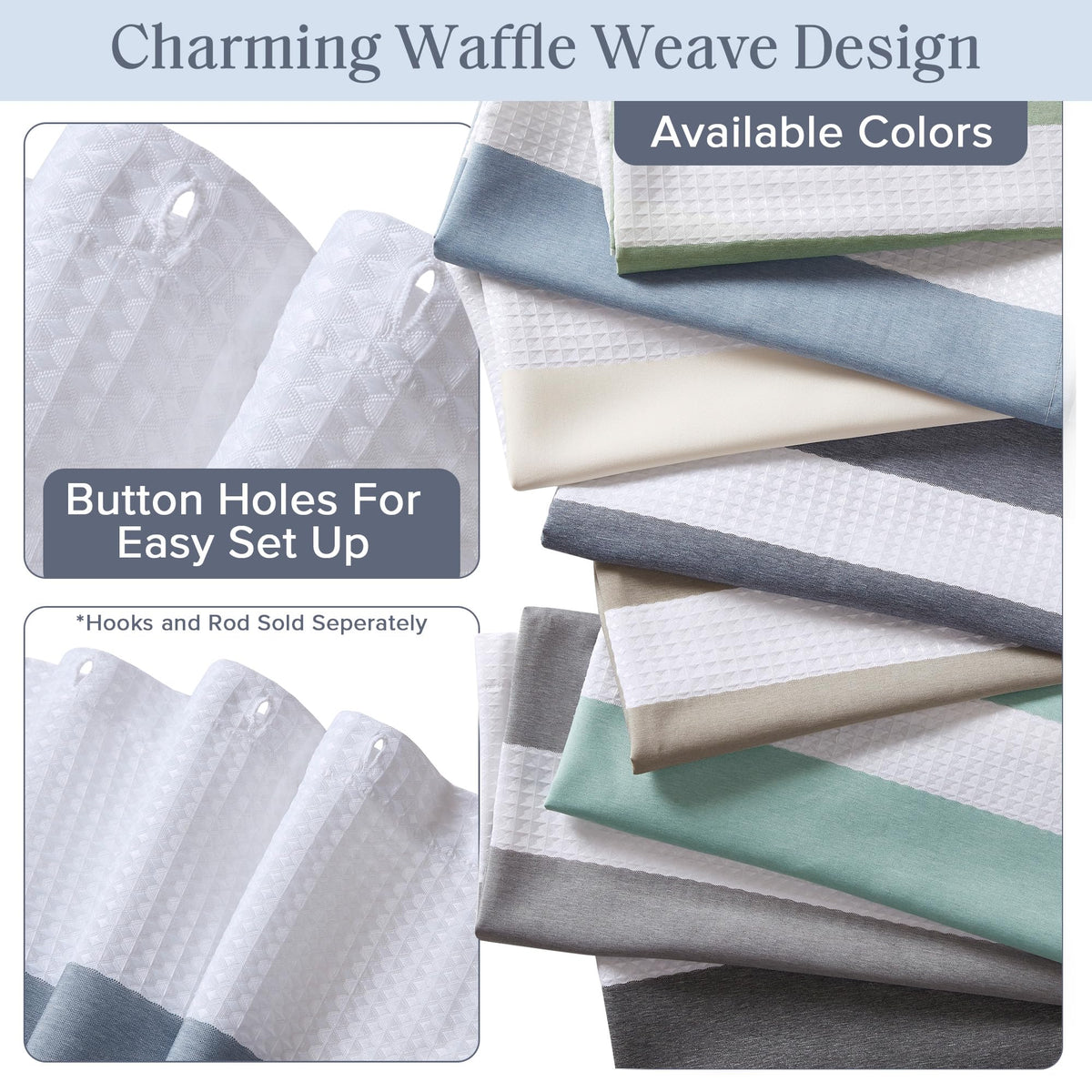Update your space with the Madison Park Spa Waffle Shower Curtain with 3M Treatment. Several alternative colors pieced with a white waffle weave manipulation makes you feel like you're in the spa, while the 3M water repellent treatment keeps your curtain looking newer, longer. Various colors and sizes are available to fit any bathroom decor and space. Size shown in image is standard 72x72”, stripe design may vary per all other sizes.