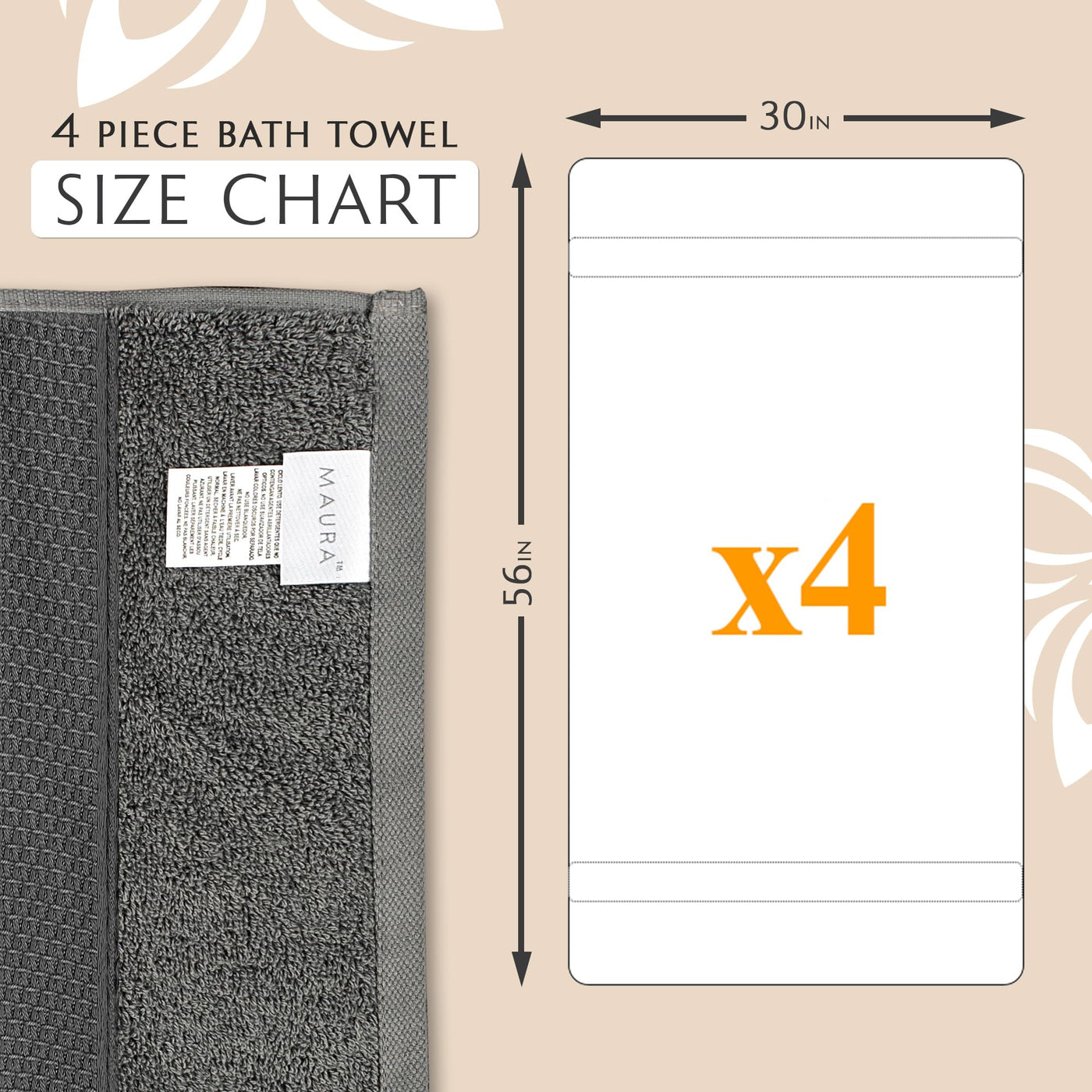 Maura Grey Extra Large Turkish Cotton Luxury Bath Towels Set Of 4. Ultra-Soft, Thick & Plush Towels For Bathroom - Space Gray