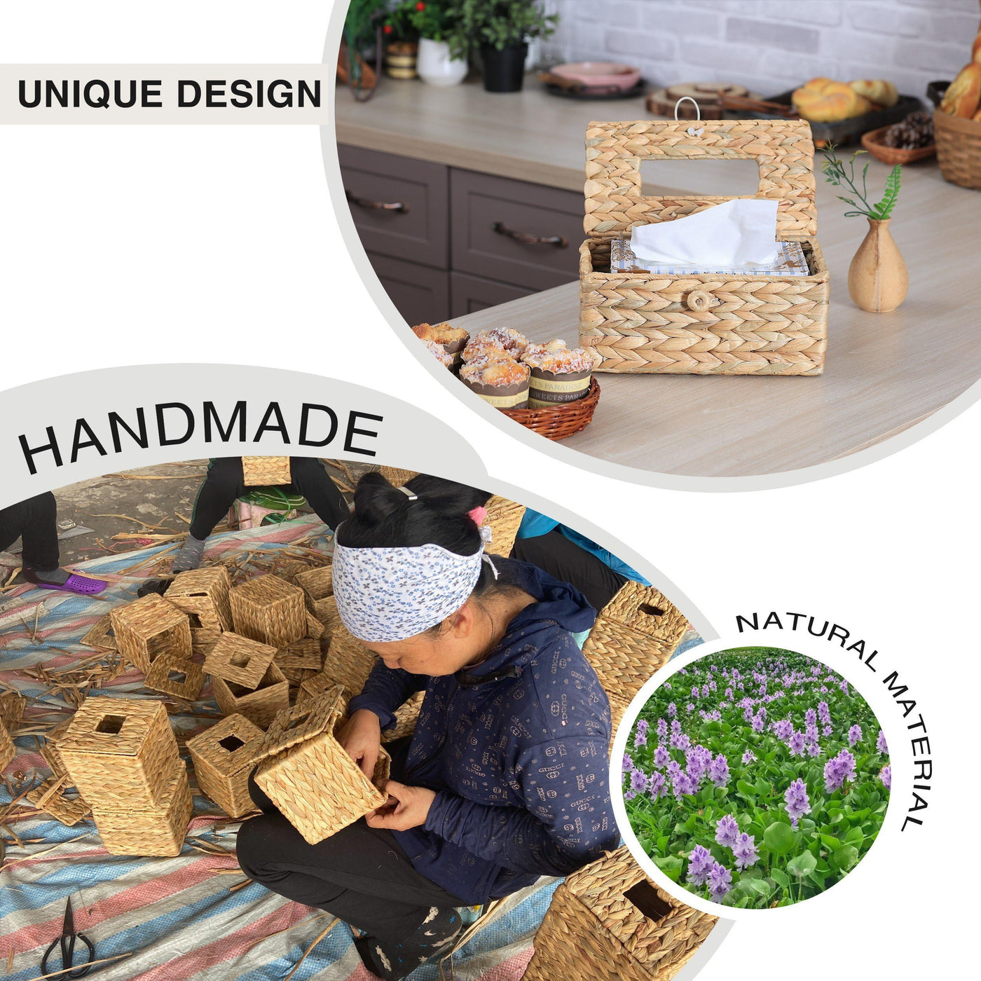 Minhkust Tissue Box Holder With Flip-Open Top, Tissue Box Cover Rectangular, Rattan Wicker Rectangle Tissues Box Cover, Boho Dec