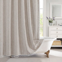 Mitovilla Boho Long Shower Curtain 72 X 78, Farmhouse 78 Inch Long Cotton Linen Fabric Shower Curtains With Tassel For Chic Cott