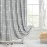 Mitovilla Boho Shower Curtain Set 72 X 78, Grey Farmhouse 78 Inch Long Cotton Linen Tassel Ultra Thick Heavy Duty Fabric Shower