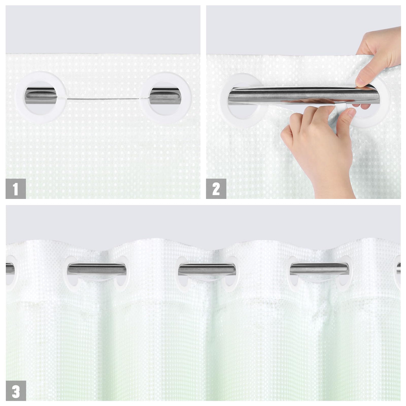Q: Does this shower curtain come with hooks?A: No, the MitoVilla shower curtain features a convenient split ring design that allows for easy hanging without the need for hooks.