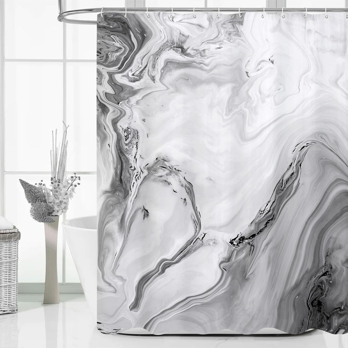 Mitovilla Grey Marble Extra Long Shower Curtain Set 72 X 84, Modern Ombre 84 Inch Xl Shower Curtains For Chic Bathroom Decor, Ab