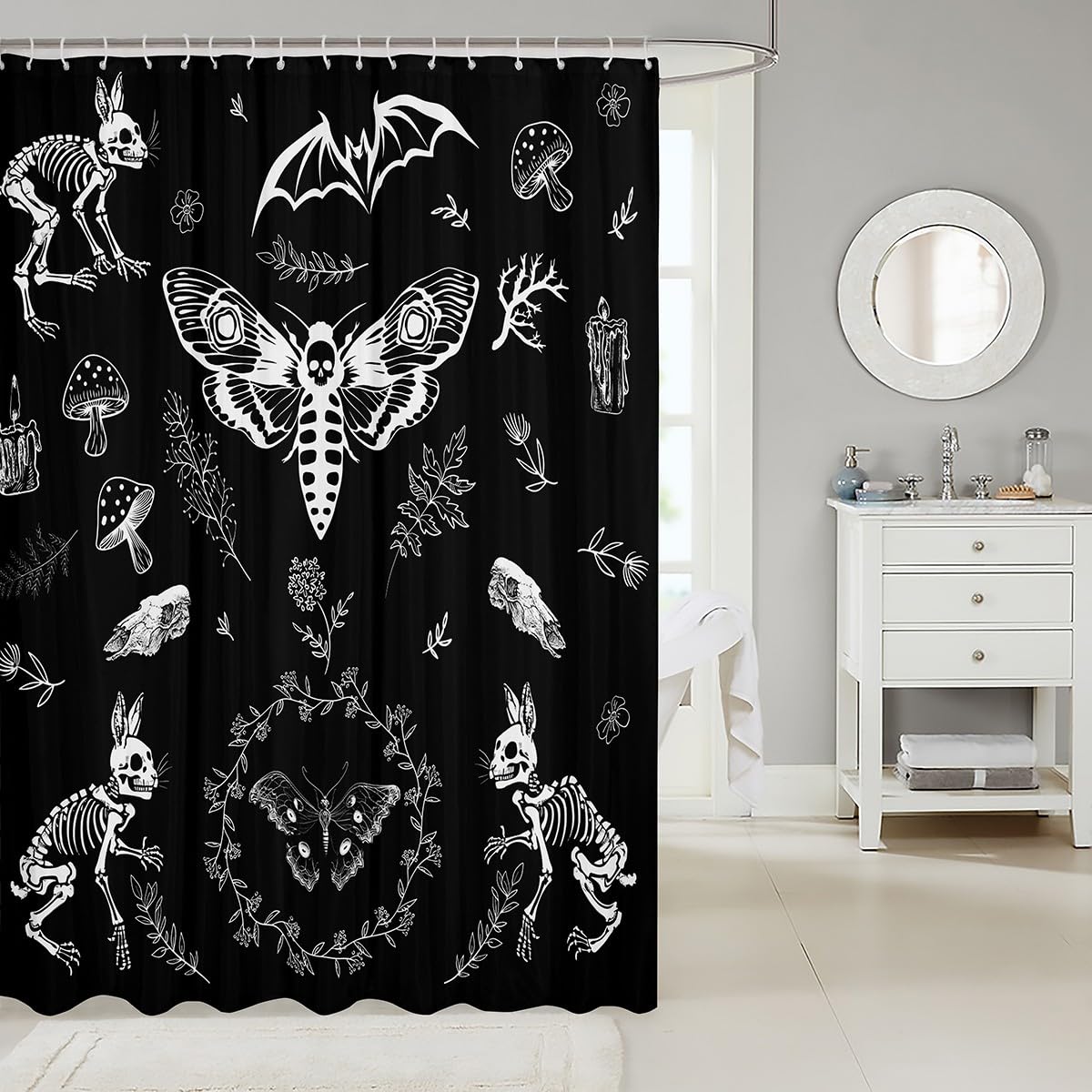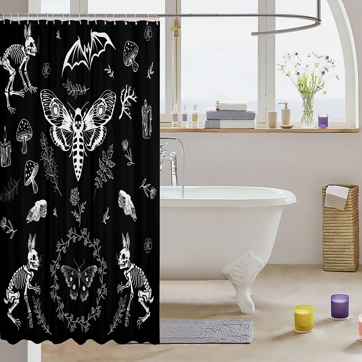 Moth Skull Shower Curtain For Bathtub Boho Personalized Animal Skeleton Btahroom Shower Curtains Halloween Gothic Bones Bath Cur