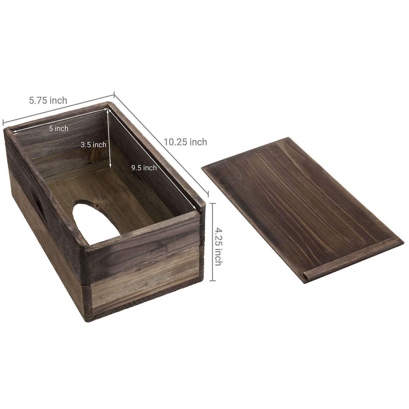 Offering Stylish Concealment For Tissue Boxes, This Two-Tone Torched Wood Tissue Box Holder Complements Rustic Decors While Maintaining Hospitality For Guests. The Slide-Out Bottom Keeps Tissue Boxes Secure And Allows Easy Changes Of Empty Boxes, And The Interior Accommodates Boxes Up To 180-Count Size. Approximate Dimensions: 10.25 L X 5.75 W X 4.5 H; Interior - 9.5 L X 5.0 W X 3.5 H (In Inches)