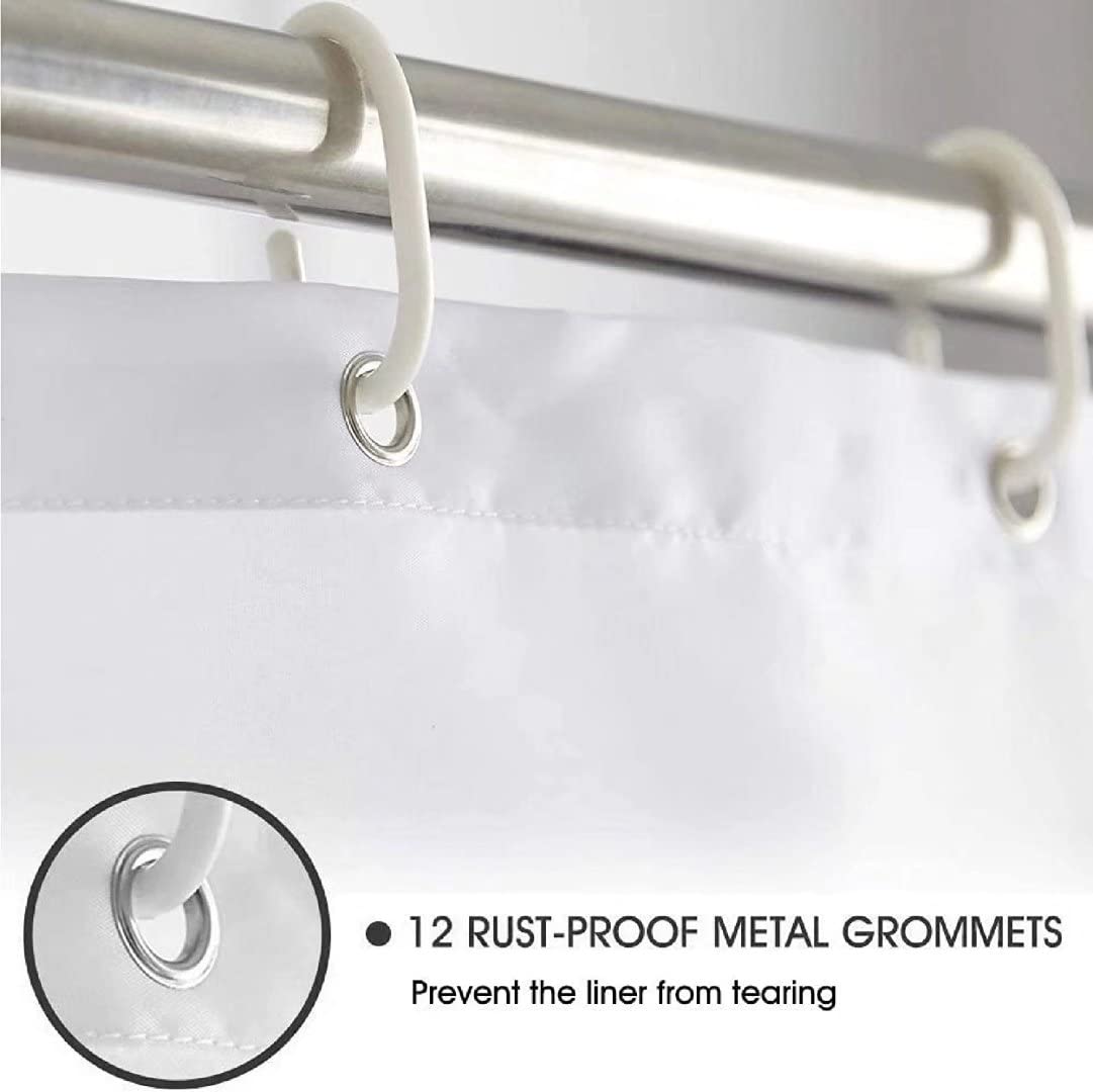 Q: How do I install the shower curtain?A: The shower curtain comes with 12 sturdy hooks for easy installation. Simply attach the hooks to the curtain and hang them on your shower rod.