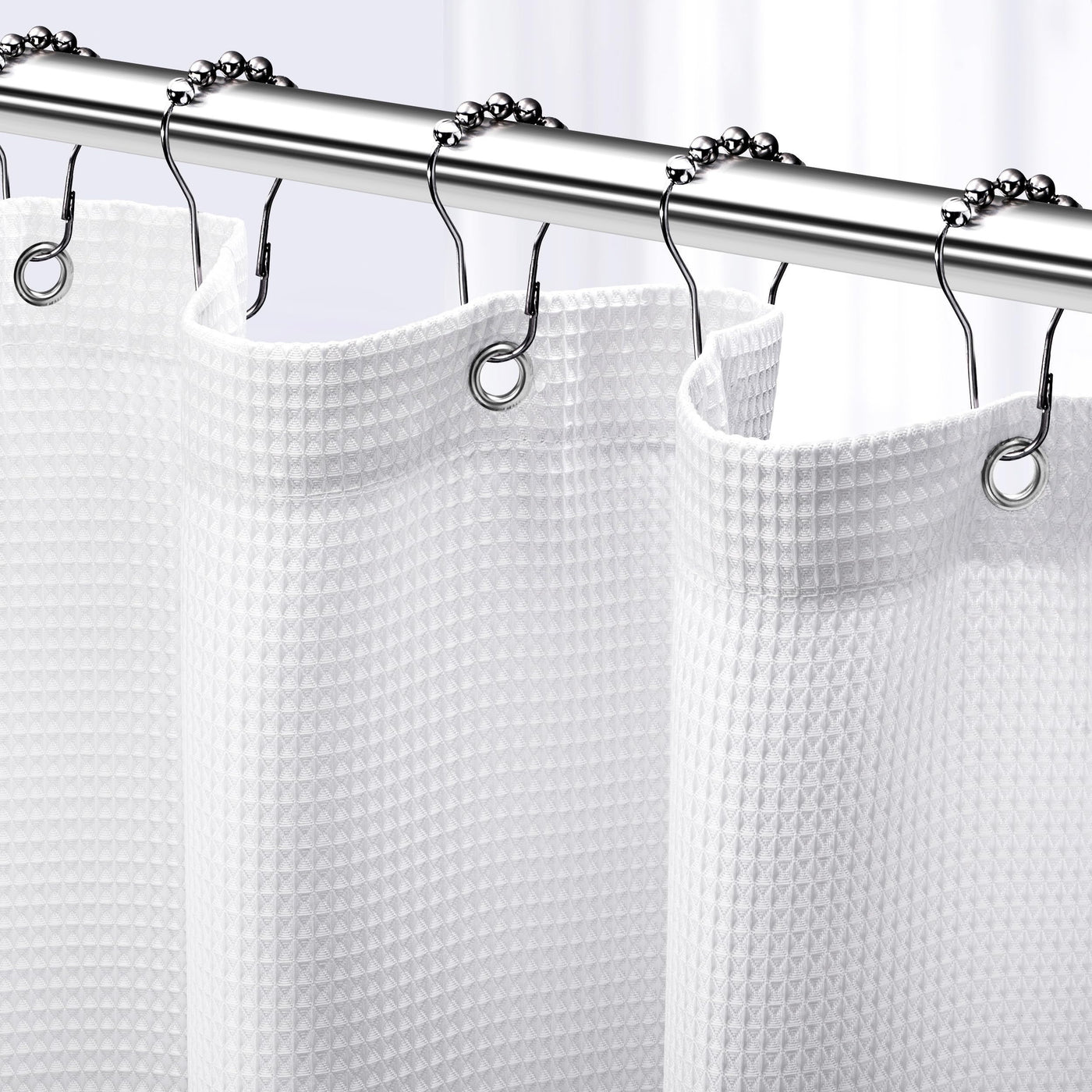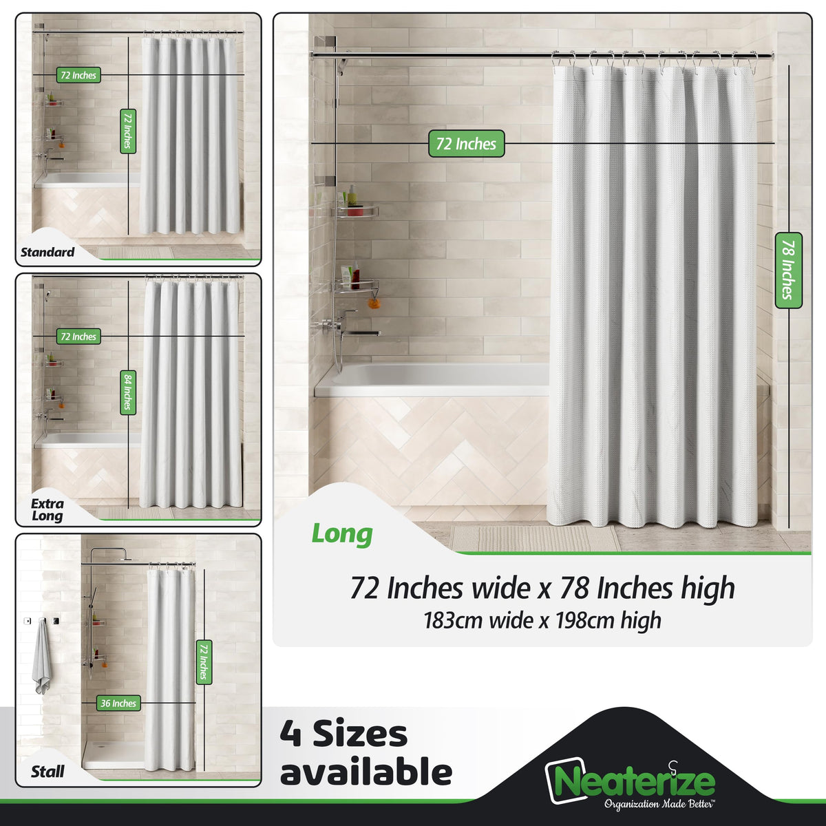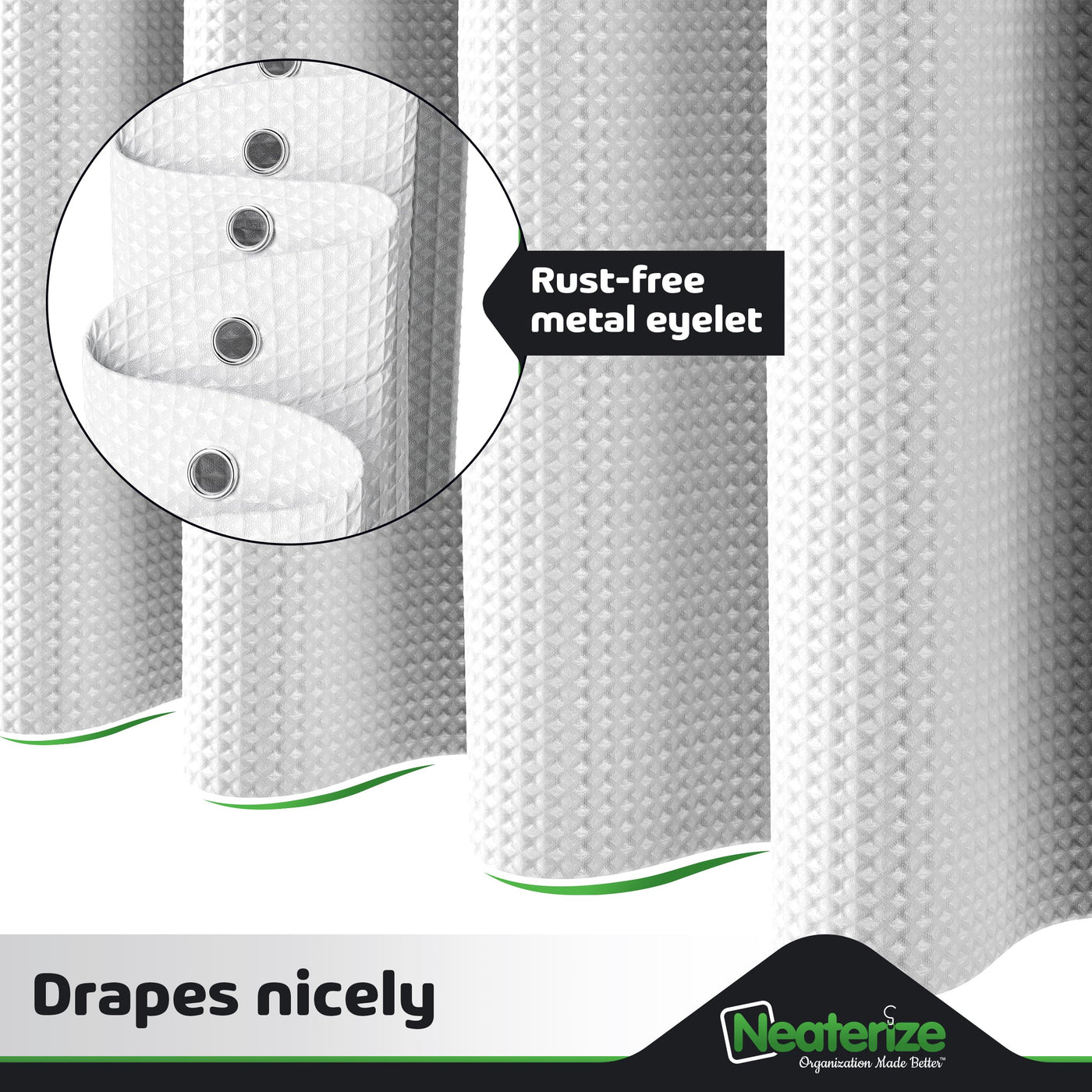 Neaterize Shower Curtain White - Hotel Style Shower Curtains For Bathroom With Waffle Design, 72X78 Inches - White Fabric Shower