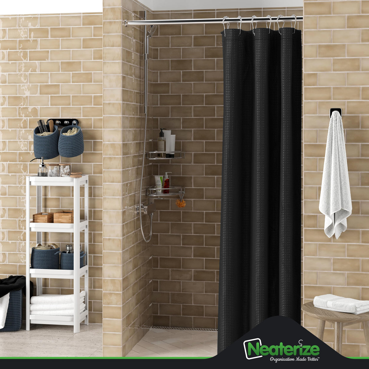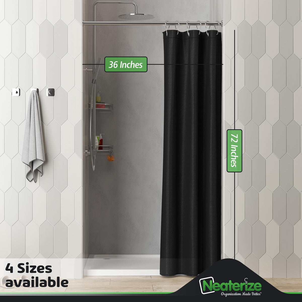 Neaterize Stall Shower Curtain Black - Hotel Style Black Shower Curtains For Bathroom With Waffle Design, 36X72 Inches - Fabric
