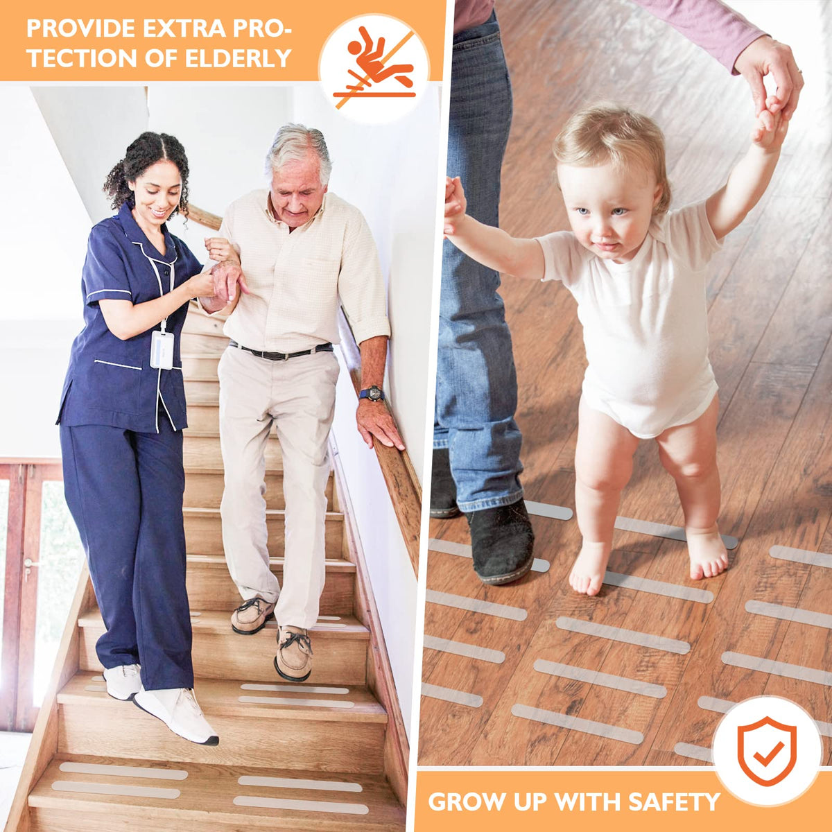 Q: Are these stickers safe for children and the elderly?A: Yes, these non-slip bathtub stickers are designed to enhance safety for both children and the elderly. Their unique design helps prevent slipping in slippery areas, making them suitable for various surfaces like bathtubs, stairs, and swimming pools.