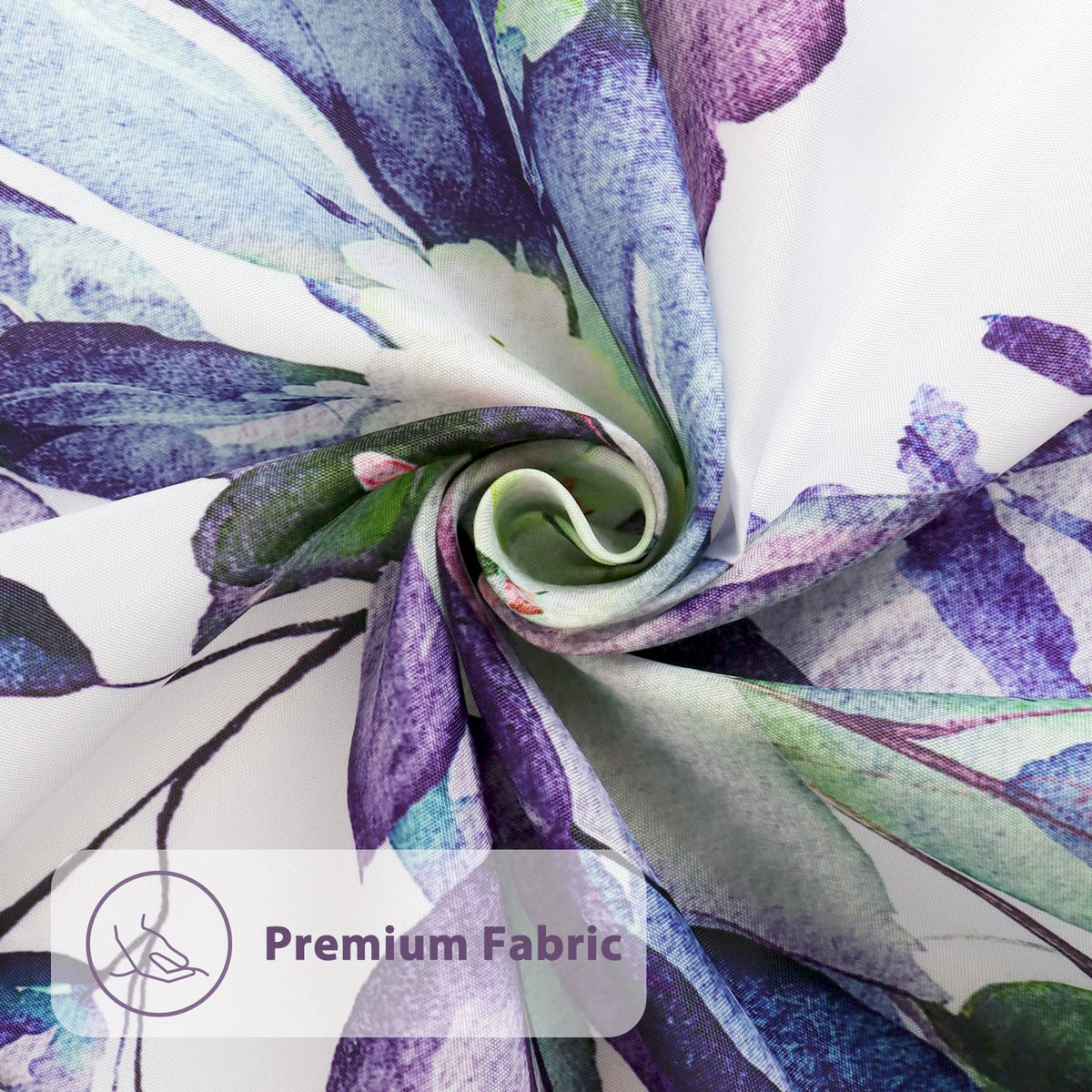 Q: What material is the Nuseiis Blue Purple Eucalyptus Leaves Shower Curtain made of?A: The Nuseiis shower curtain is made of high-quality fabric polyester, ensuring durability and long-term use.