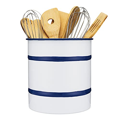 Never Misplace Your Favorite Wooden Spoon Again! Keep Your Kitchen Utensils Together In Style With This Caddy. Smooth Enamel Over Metal And Hand-Painted Blue Lines Define The Edges On All Pieces Of Our Farmhouse Collection. Pale Cream-Colored Inside And Out, These Pieces Will Give Your Kitchen And Dining Areas That Cozy Country Feel As You Prep, Cook And Serve Your Friends And Family.