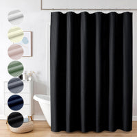 Ovzme Berry Black Fabric Shower Curtain - 3D Embossed Hotel Thick Quality Soft Cloth Shower Curtain, Waffle Water Repellent Textured & Machine Washable Shower Curtain - Standard Size 72X72, Black