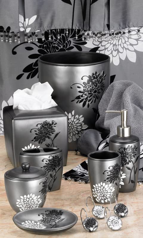Brighten Up The Decor With The Erica Collection Waste Basket. It'S Bordered Teardrop Design Is Stylish And Vibrant. It Delivers That Perfect Pop Of Color To Update The Space. Featured Color Is The Grey. This Design Comes In Grey Color And Matching Bath Accessories.