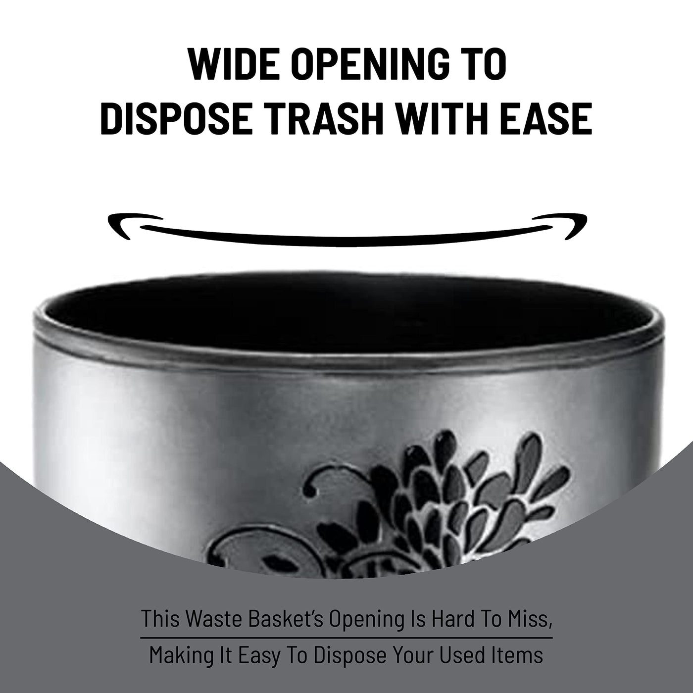 Q: What material is the Erica Collection waste basket made from?A: The Erica Collection waste basket is crafted from durable resin material, which ensures a long-lasting design that is easy to clean.