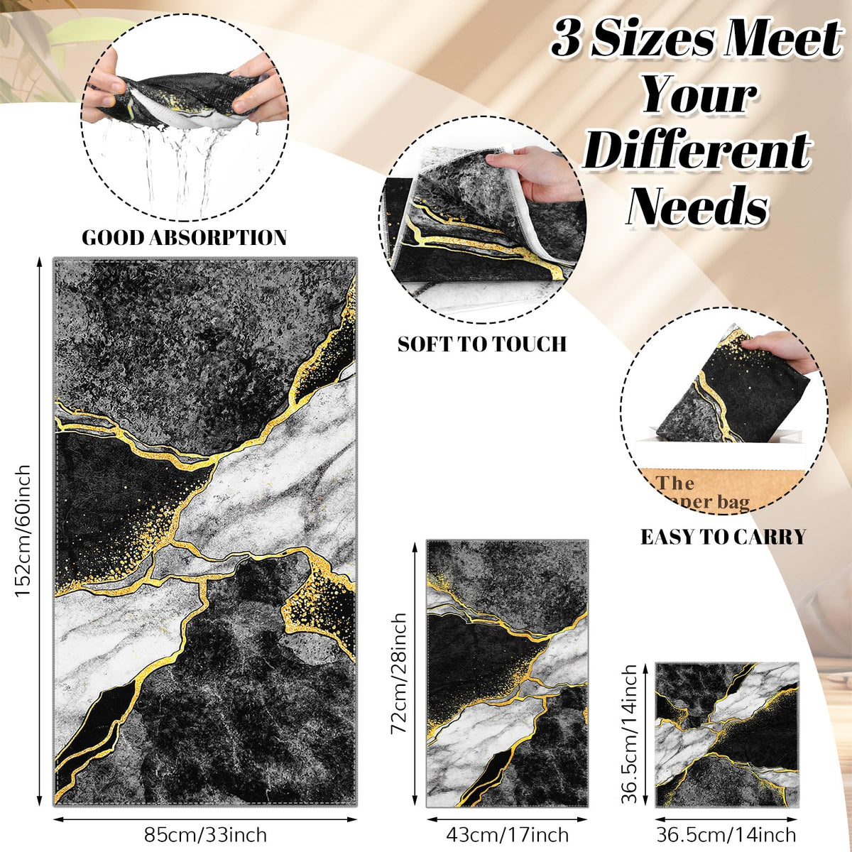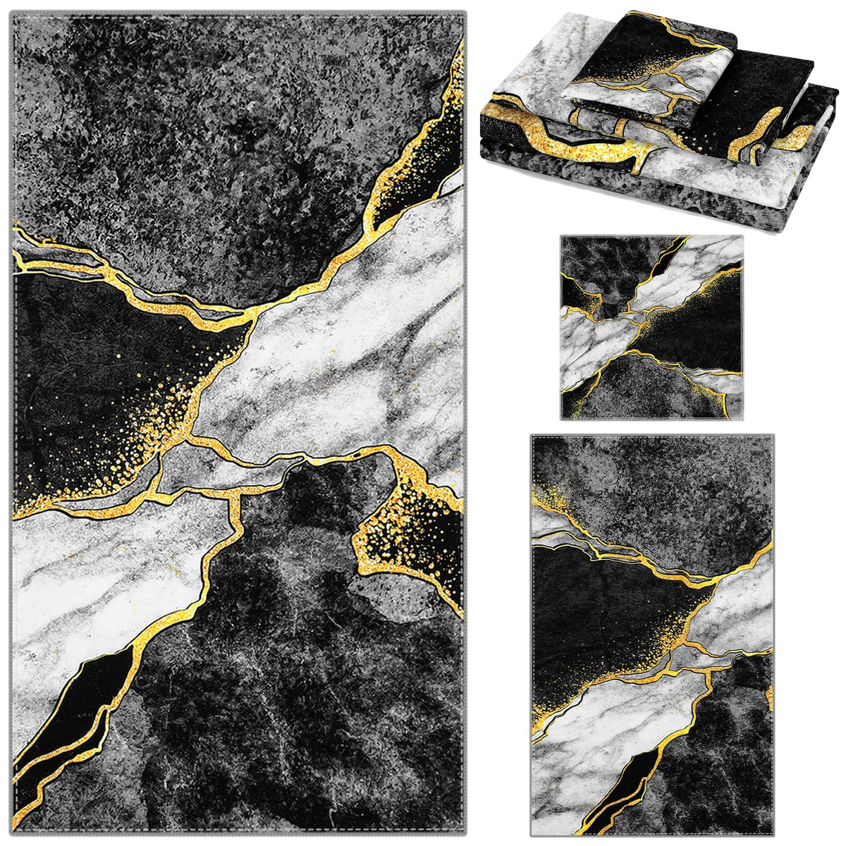 Preboun 3 Pack Black Marble Bathroom Towels Set Gold Line Hand Towels Black Bath Towels Gold Crack Dish Towels Absorbent Fingert