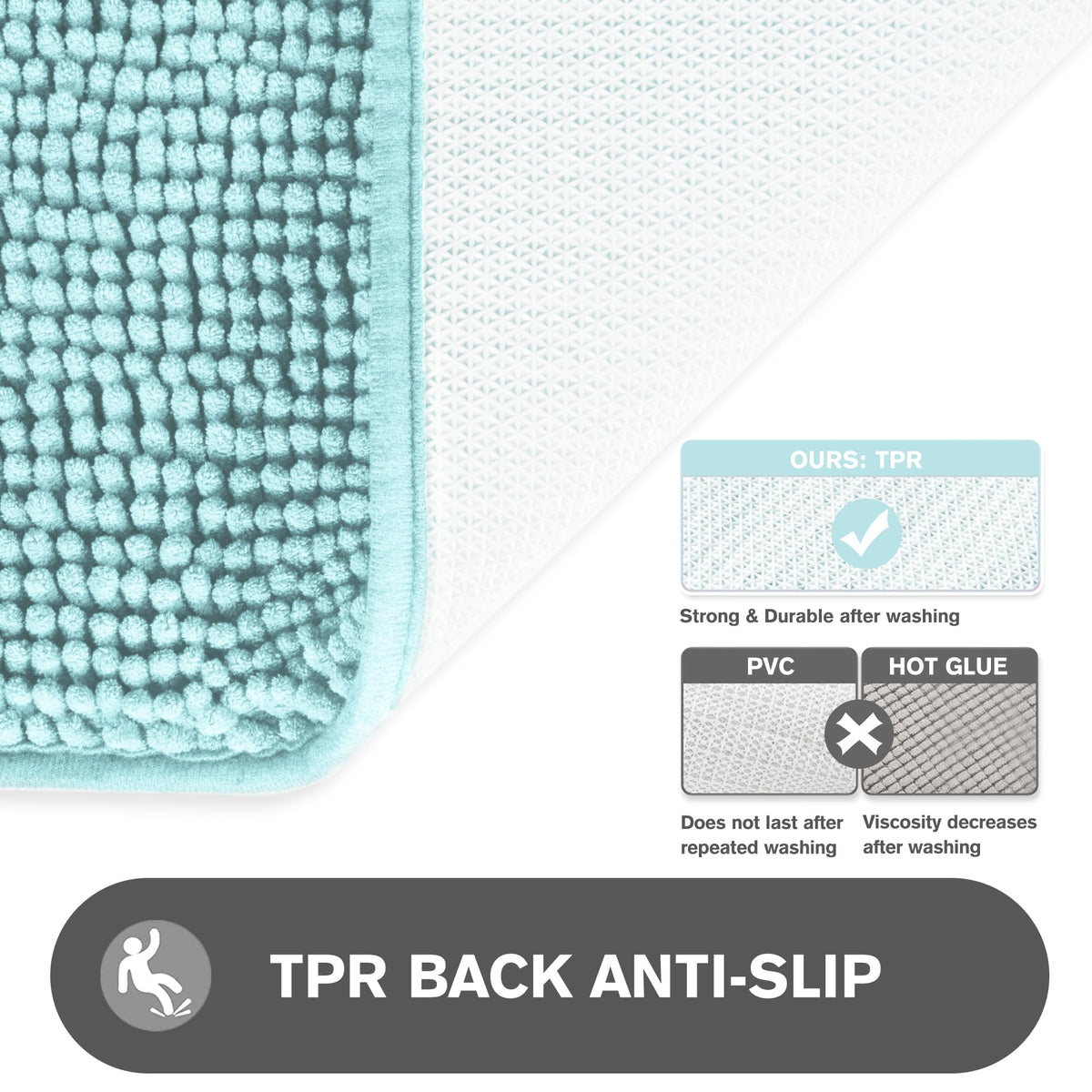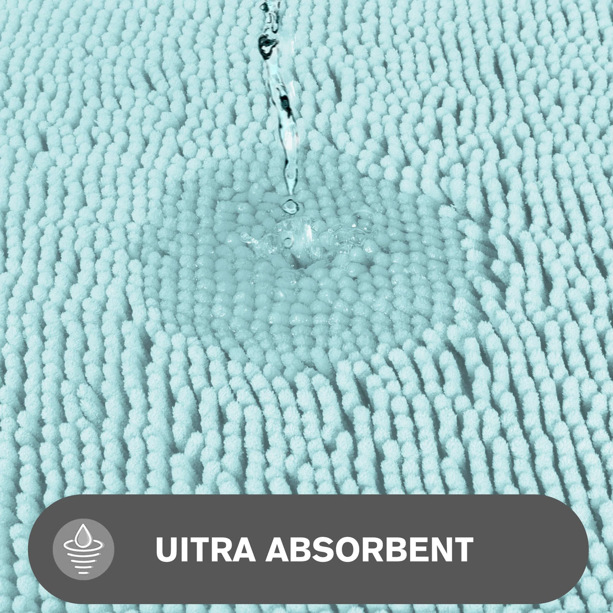 Pureswan Aqua Bathroom Rugs - Absorbent And Washable Bath Mat, Non-Slip, Thick Soft Chenille Bath Rugs For Bathroom Floor, Showe