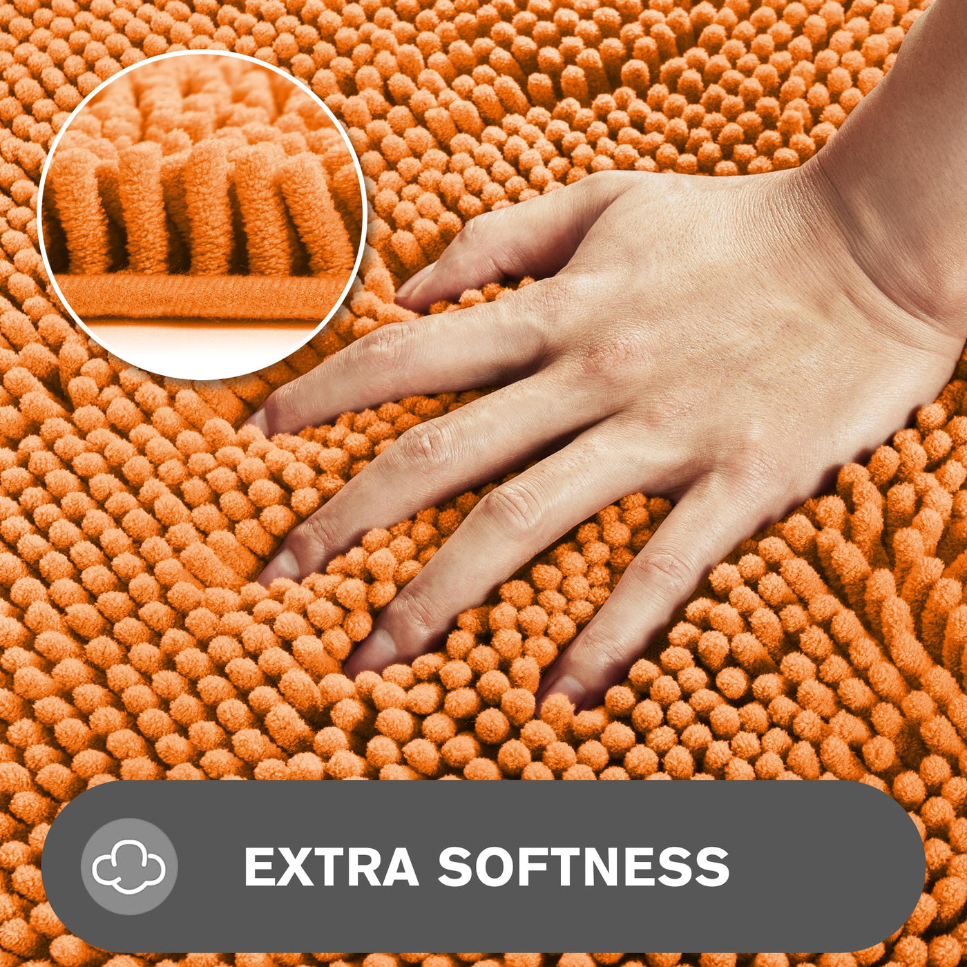 Q: What makes the PureSwan Bathroom Runner Rug ultra absorbent?A: The rug is crafted from dense, plush chenille that quickly absorbs water, helping to keep your floors dry and tidy after showers or baths.