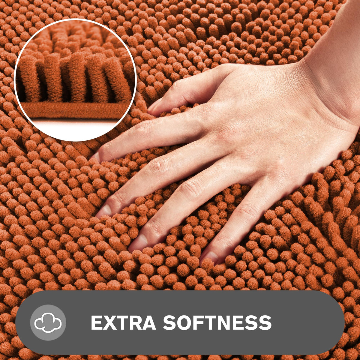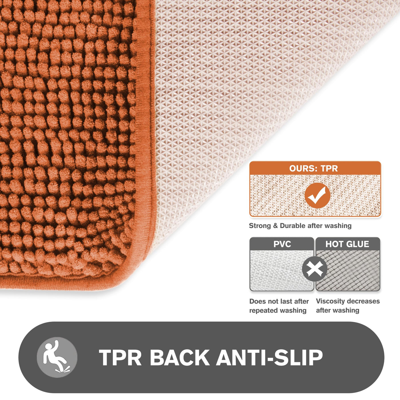 Pureswan Burnt Orange Bathroom Rugs - Absorbent And Washable Bath Mat, Non-Slip, Thick Soft Chenille Bath Rugs For Bathroom Floo