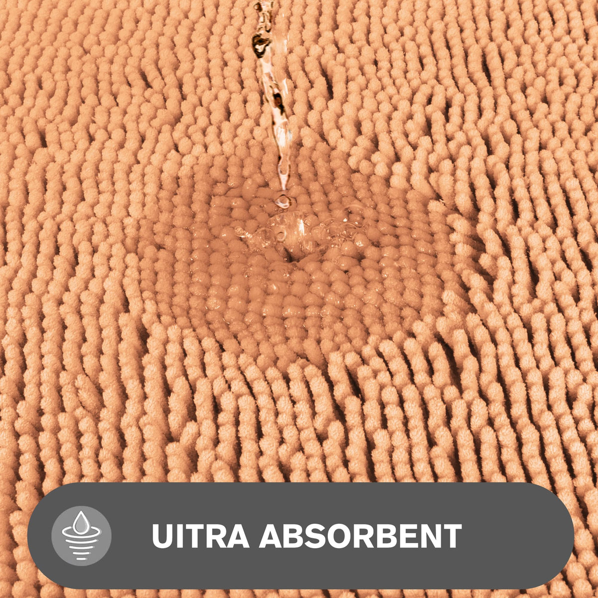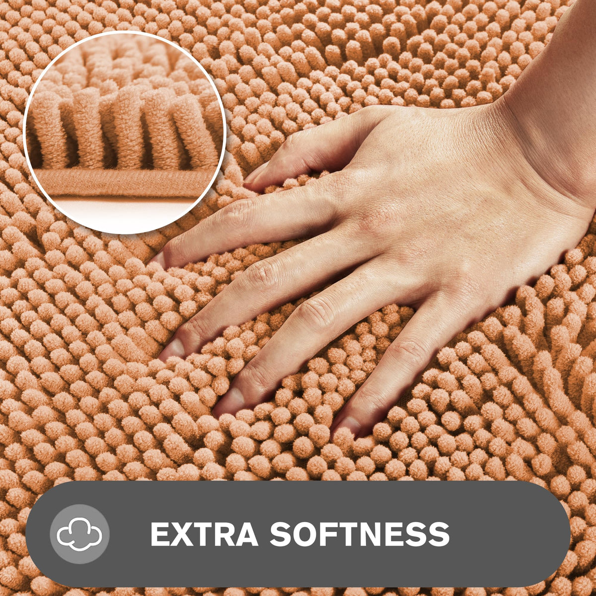 Pureswan Peach 47 X 17 Bathroom Rugs - Absorbent And Washable Bath Mat, Non-Slip, Thick Soft Chenille Bath Rugs For Bathroom Flo