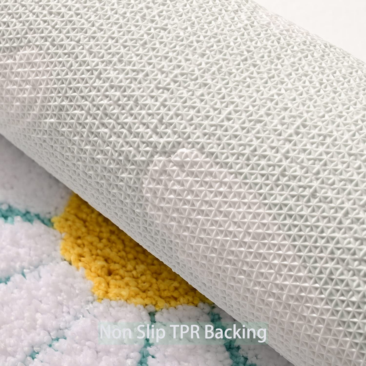 Qjhomo Toilet Rugs U Shaped, Green Toilet Mat Cute Daisy Contour Bath Rug 20''X24'', Extra Thick Soft Machine Washable Toilet Ca