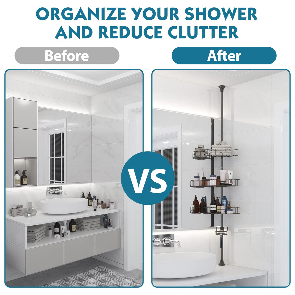 Q: How many baskets does the shower caddy have and are they adjustable?A: The shower caddy features four adjustable baskets that allow you to customize the height and spacing according to your storage needs.