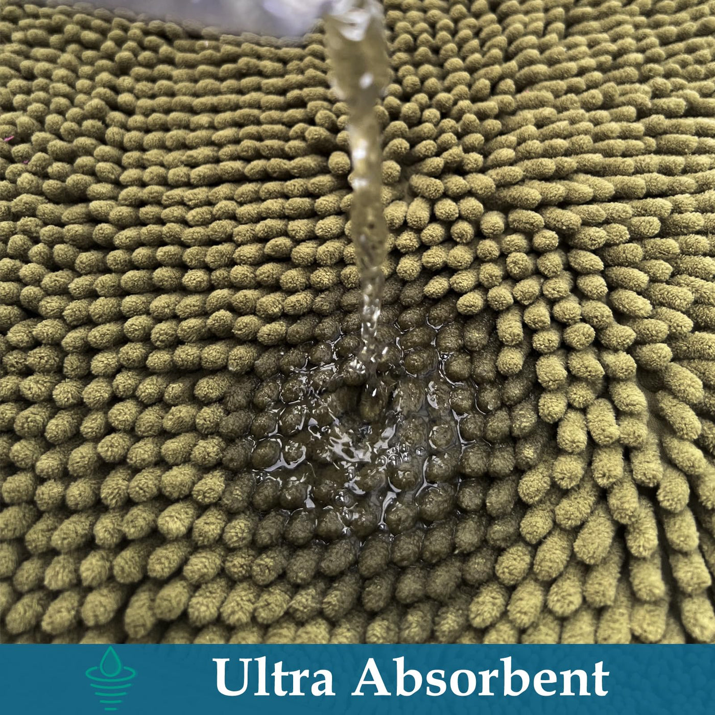 Q: What materials are the Sage Green Bathroom Rugs made from?A: The Sage Green Bathroom Rugs are made from thick, soft chenille, providing a plush feel underfoot while also being ultra absorbent.