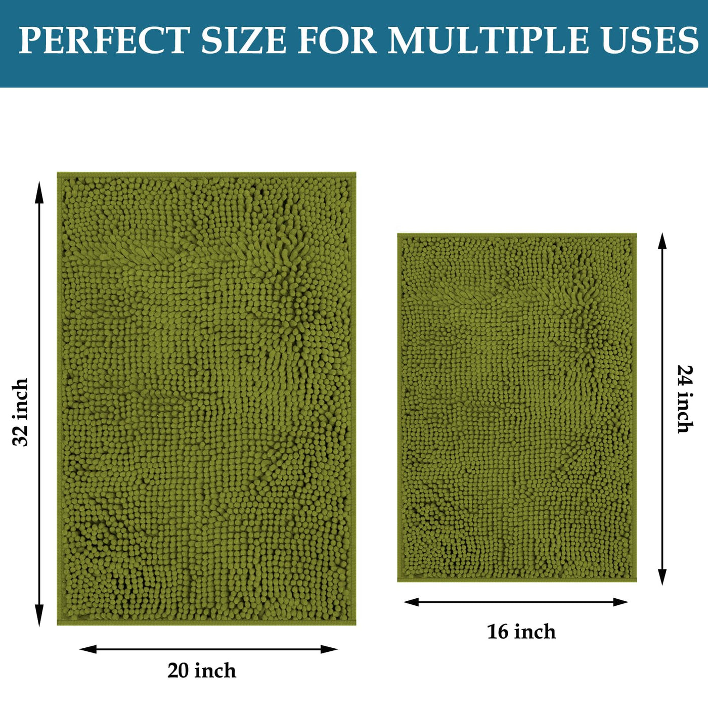Sage Green Bathroom Rugs Set 2 Piece Bathroom Set Bath Rugs Non Slip Bath Mats For Bathroom, Thick Soft Chenille Bathroom Rug Se