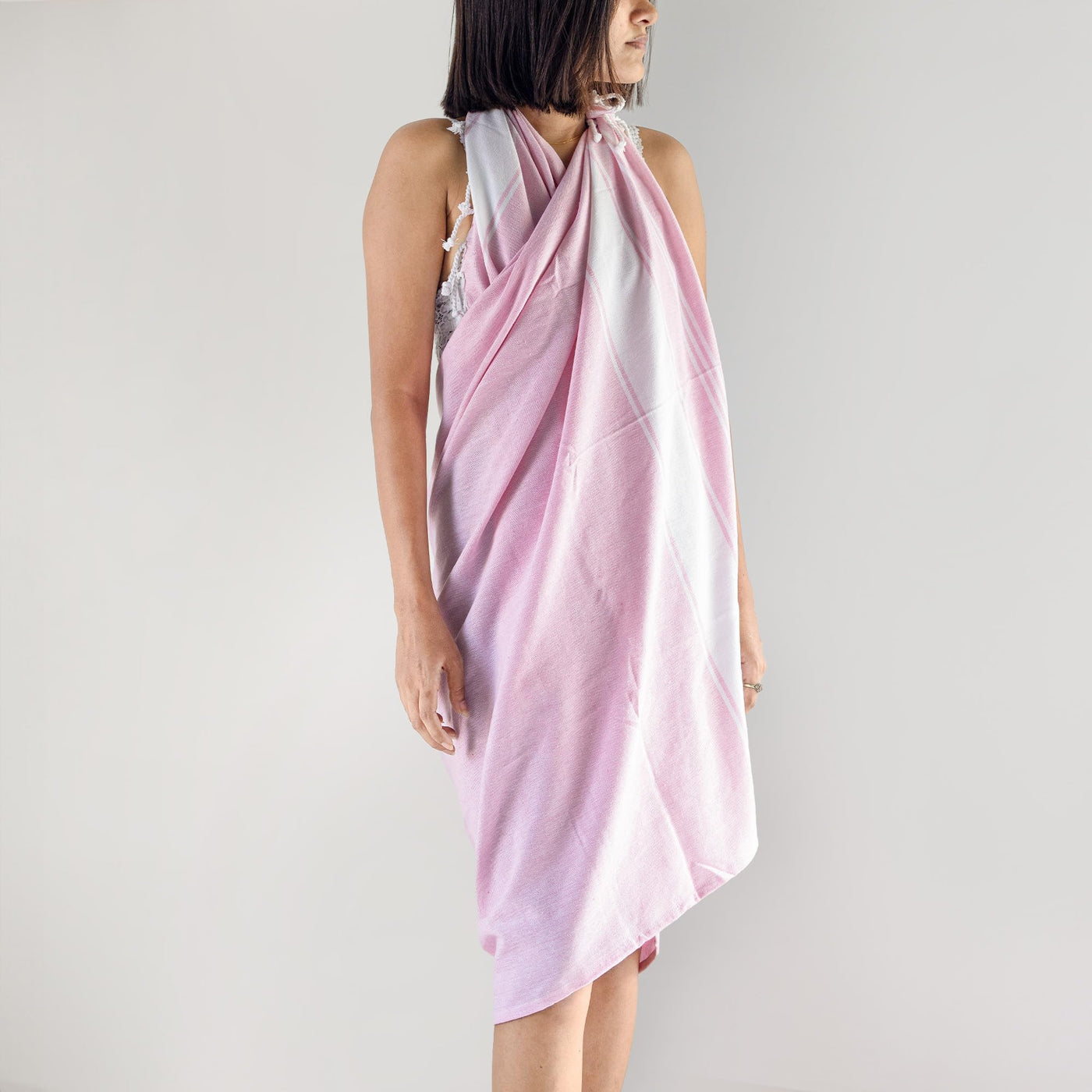Q: How should I care for my Salt Earth Turkish Beach Towels?A: To care for your Salt Earth Turkish Beach Towels, machine wash them at or below 30°C. You may use non-chlorine bleach if needed. For drying, tumble dry on low heat and iron at medium temperature to maintain their quality.