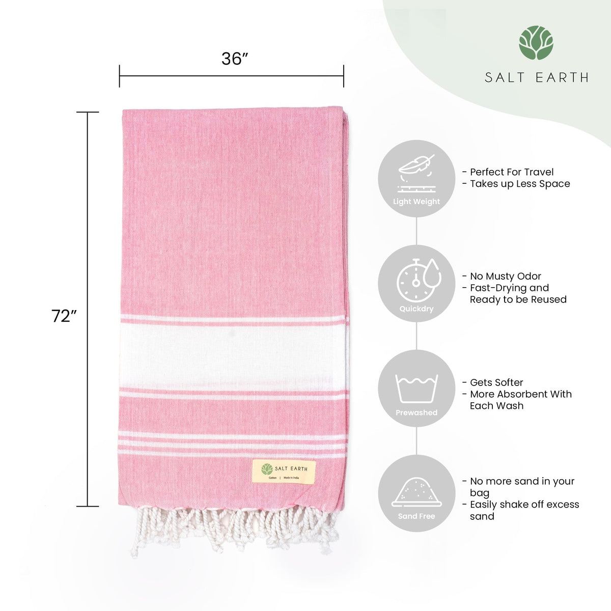 Salt Earth'S Versatile And Functional Turkish Bath Towels, Designed To Simplify Your Life And Elevate Your Beach Experience. Our Quick-Dry Beach Towels Oversized Boast Exceptional Absorbency, Supreme Softness, And Rapid Drying, Ensuring Ultimate Comfort And Convenience Whether You'Re Lounging By The Pool, Hitting The Gym, Or Embarking On A Camping Trip. Crafted From High-Quality Cotton And Prewashed For Added Softness, These Bathroom Towels Are Inherently Sand-Resistant, Making Them The Perfect Hassle-Free Companion For Beach Outings. With Their Distinctive Stripe Design And Chic Tassels, They Add A Touch Of Boho Elegance To Any Bathroom Or Seaside Adventure. These Towel Sets Are Available In A Wide Range Of Vibrant Colors And Bundle Sizes, Including Packs Of 2, 4, Or 6, There'S An Option To Match Every Style And Preference. These Multi-Purpose Towels Can Be Used As Sarongs, Yoga Towels, Picnic Blankets, Throw Blankets, Or Bath Sheets, Offering Limitless Possibilities For Use. Measuring A Generous 36 X 72 , Our Set Of Four Oversized Beach Towels Is Designed To Be Compact And Lightweight, Ensuring Hassle-Free Packing For All Your Summer Adventures And Beach Essentials For Women. Whether You'Re Lounging On The Beach, Picnicking In The Park, Or Quick Dry Towels For Travel, These Towels Are The Ideal Choice For Versatility And Convenience. With Easy Care Instructions - Machine Wash These Turkish Towels At Or Below 30C, Tumble Dry At A Low Temperature, And Iron At A Medium Temperature - Maintaining The Quality And Softness Of These Towels Is Effortless. Upgrade Your Beach Experience With Salt Earth'S Functional And Stylish Turkish Bath Towels.