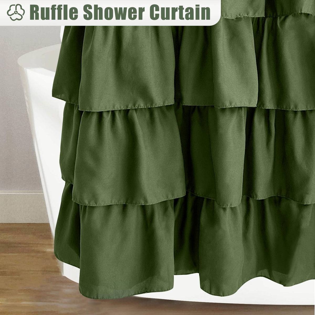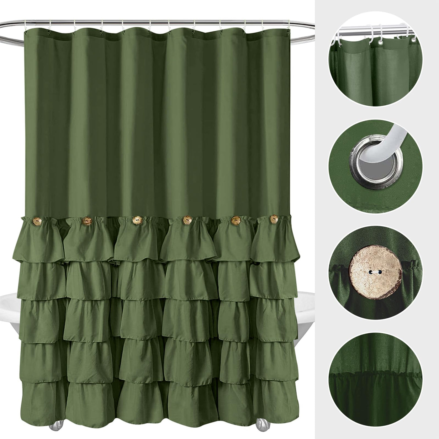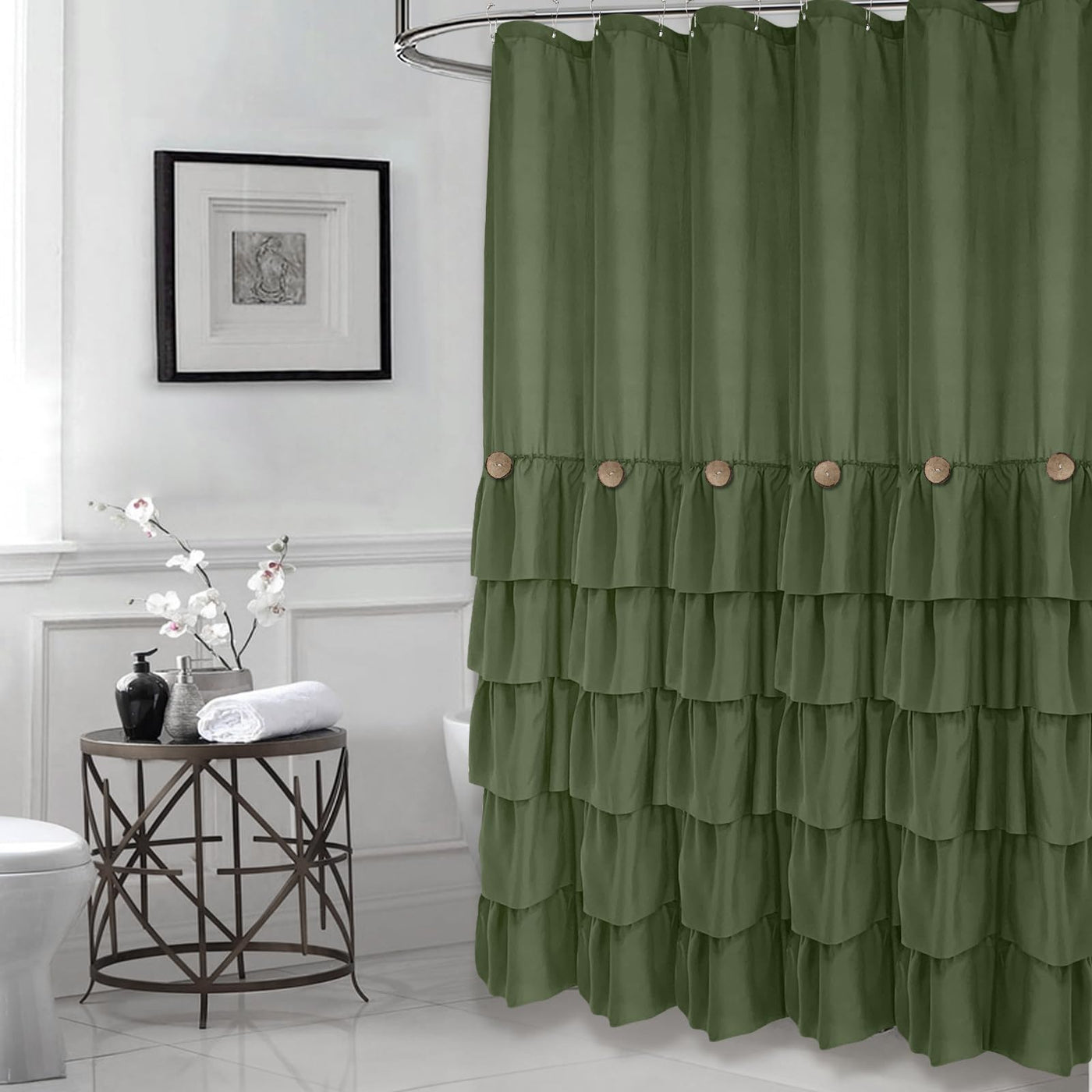 Seasonwood Sage Green Shower Curtain For Bathroom Cute Ruffle Shower Curtain 72 X 72 Inches Farmhouse Shower Curtains With Butto