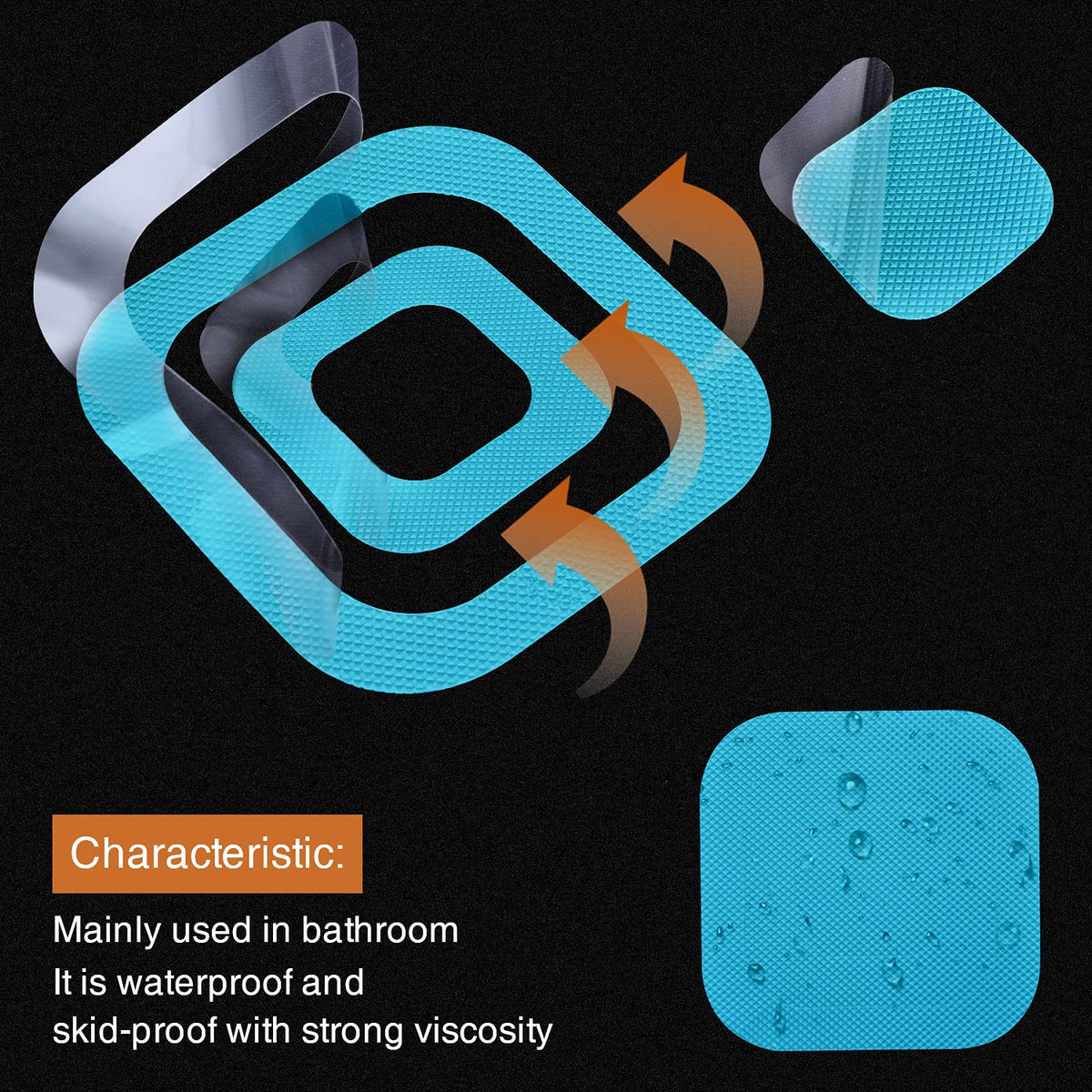 Q: How many stickers come in a package and what shapes do they include?A: Each package of Secopad Non-Slip Bathtub Stickers includes a total of 72 pieces, consisting of three different shapes: small solid squares, large squares, and smaller squares with an open center. This variety allows for flexible placement to enhance safety.